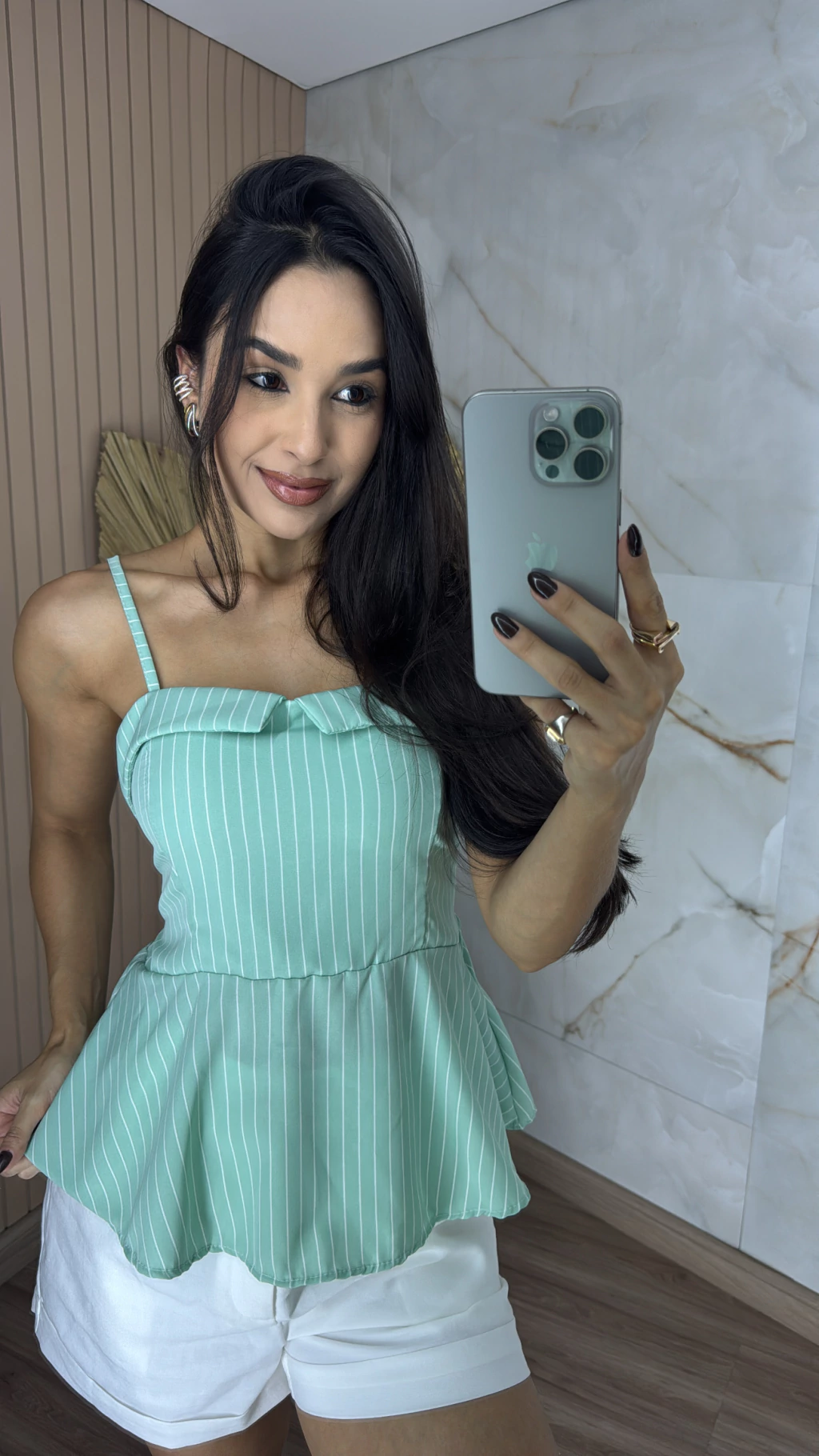 Descrição: Um toque de sofisticação aliado a delicadeza dos detalhes. A blusa alfaiataria alças finas peplum é a escolha ideal para mulheres que valorizam peças versáteis, elegantes e com acabamento impecável. O modelo conta com bojo, alças finas, que trazem leveza ao visual e valorizam o colo de forma sutil e feminina. O babado na barra adiciona um charme e movimento a peça, criando um caimento fluido que combina tanto com propostas mais casuais quanto com looks mais elaborados.