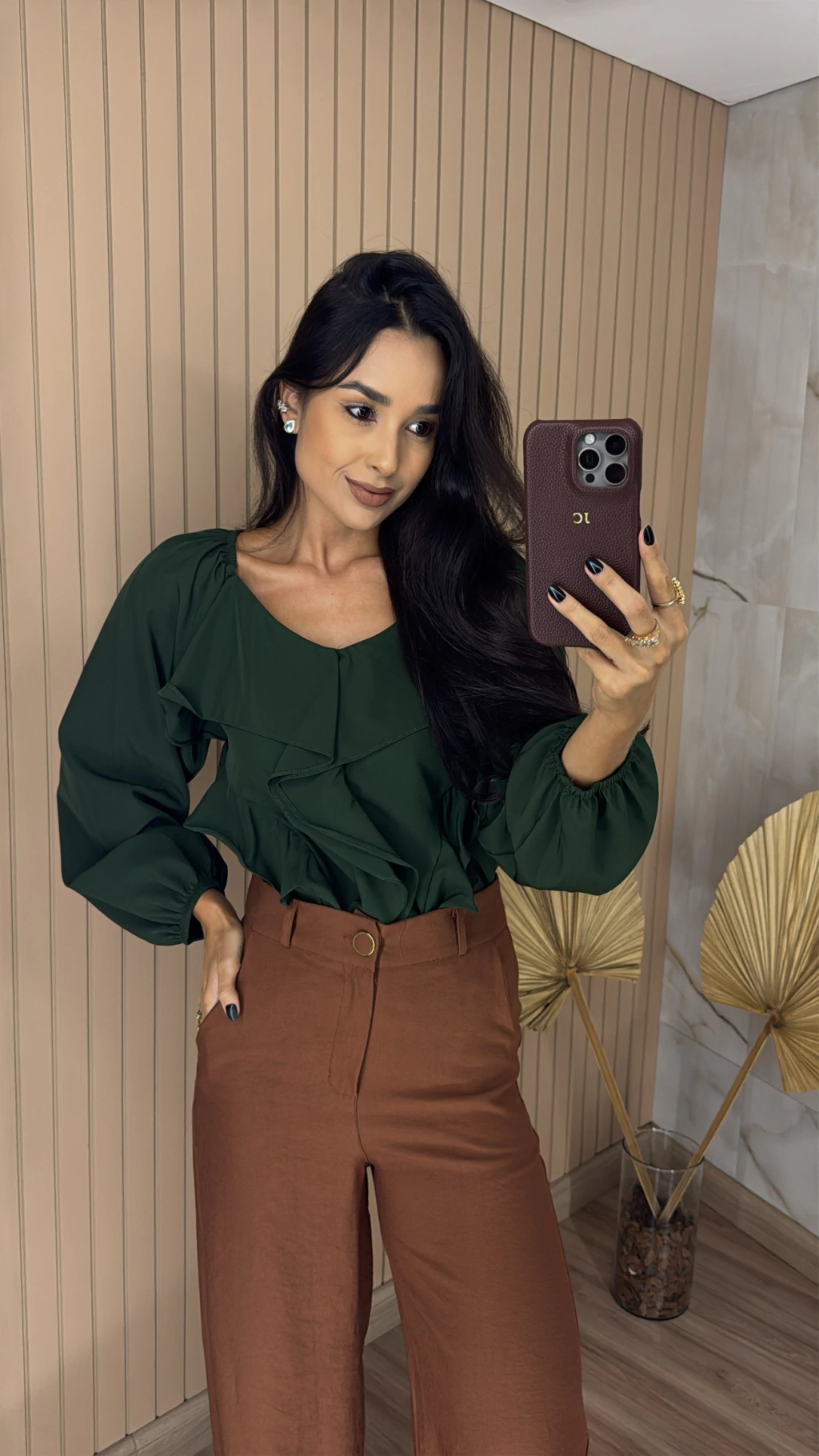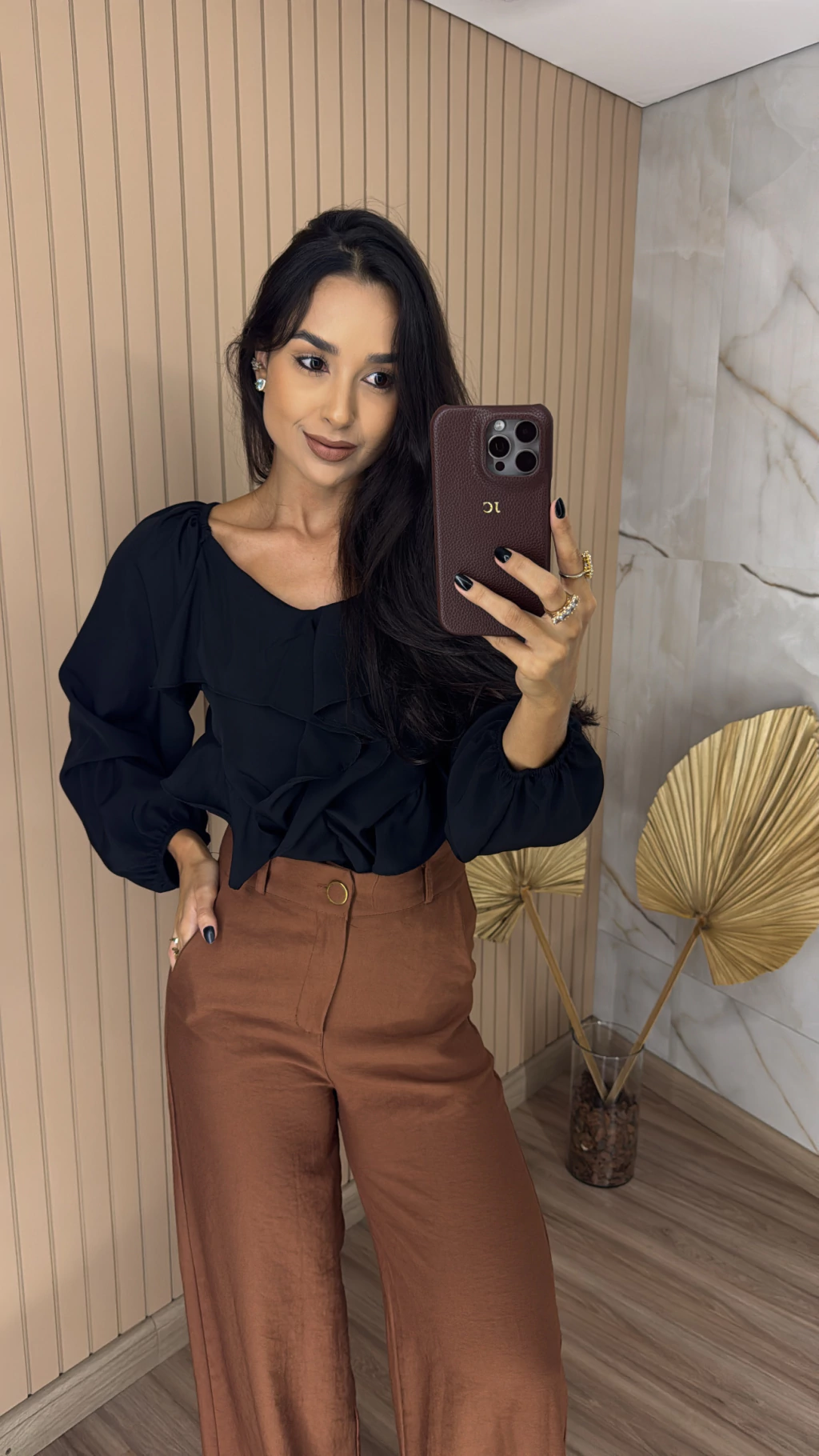 A blusa com babados e mangas longas é a escolha perfeita para quem busca um visual elegante, modernos e cheio de personalidade. Feita em tecido crepinho, essa peça proporciona conforto e leveza durante todo o uso. Seus babados delicados e as mangas longas trazem um charme extra, transformando o look em algo único e sofisticado. Ideal para diversas ocasiões, desde um evento formal até um evento casual. A blusa é versátil o suficiente para combinar com jeans, saias ou calças, criando produções que vão te acompanhar sempre.