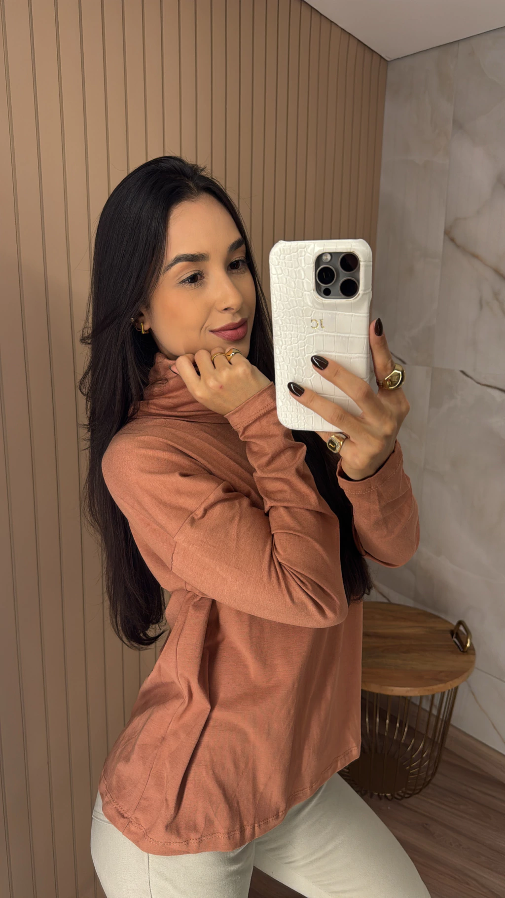 Design clássico e atemporal: A gola alta oferece um toque de sofisticação, enquanto a modelagem proporciona um caimento perfeito.
