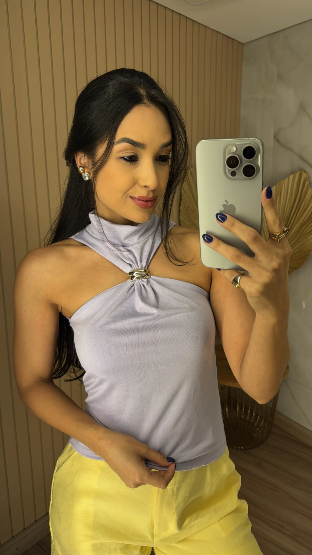 Descrição: Blusa Poliamida com Detalhe em Fivela: Estilo e Modernidade