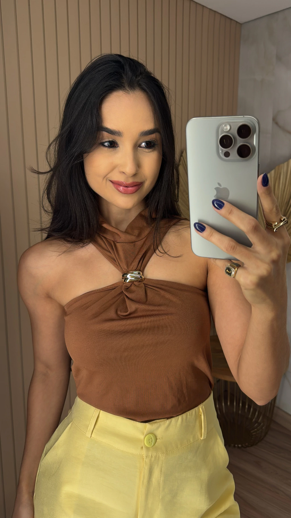 A Blusa Poliamida com Detalhe em Fivela é a peça perfeita para quem busca um visual moderno, sofisticado e cheio de personalidade. Com um design que foge do comum, ele é ideal para criar looks que se destacam, do casual chic a produções noturnas.