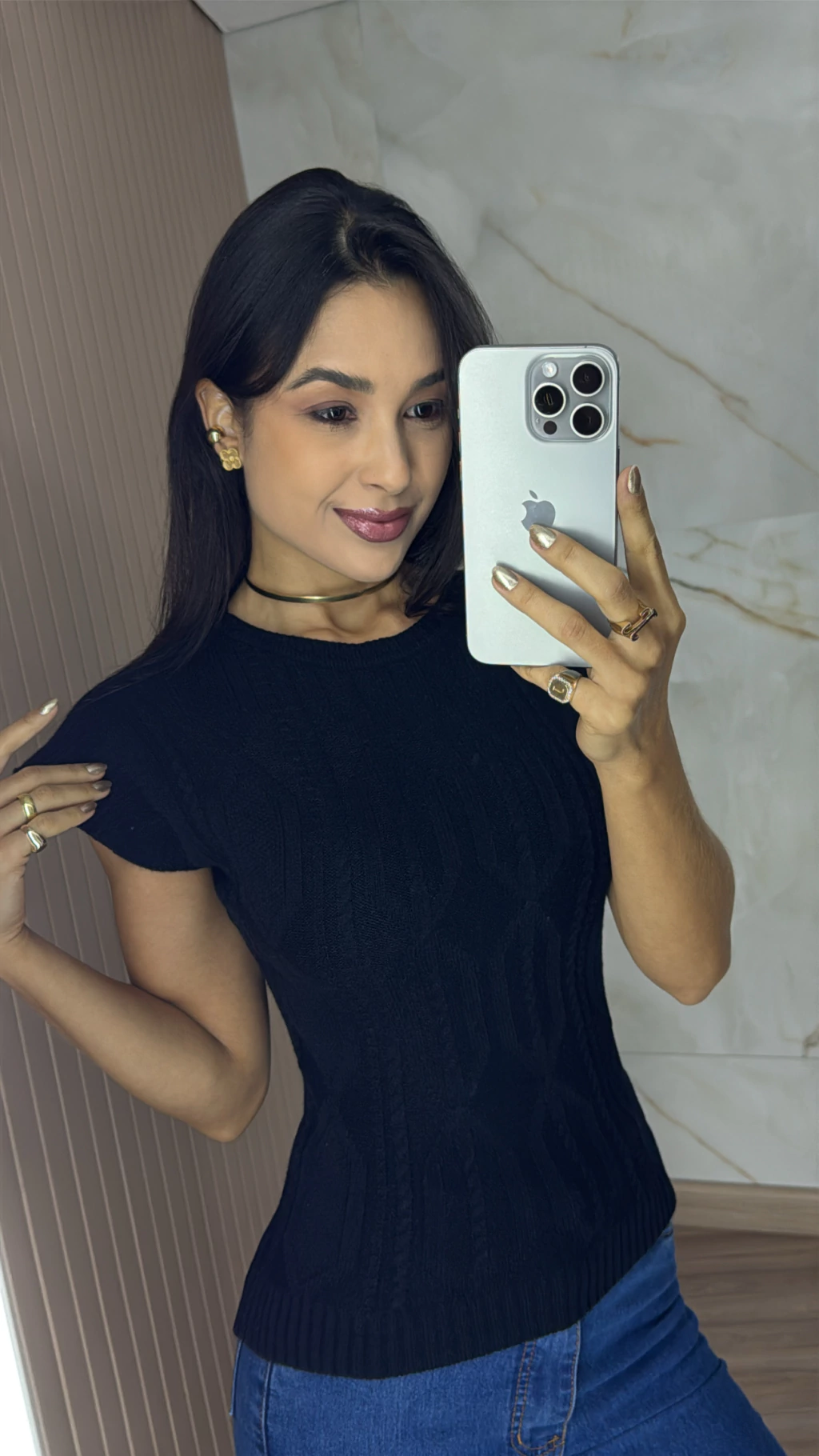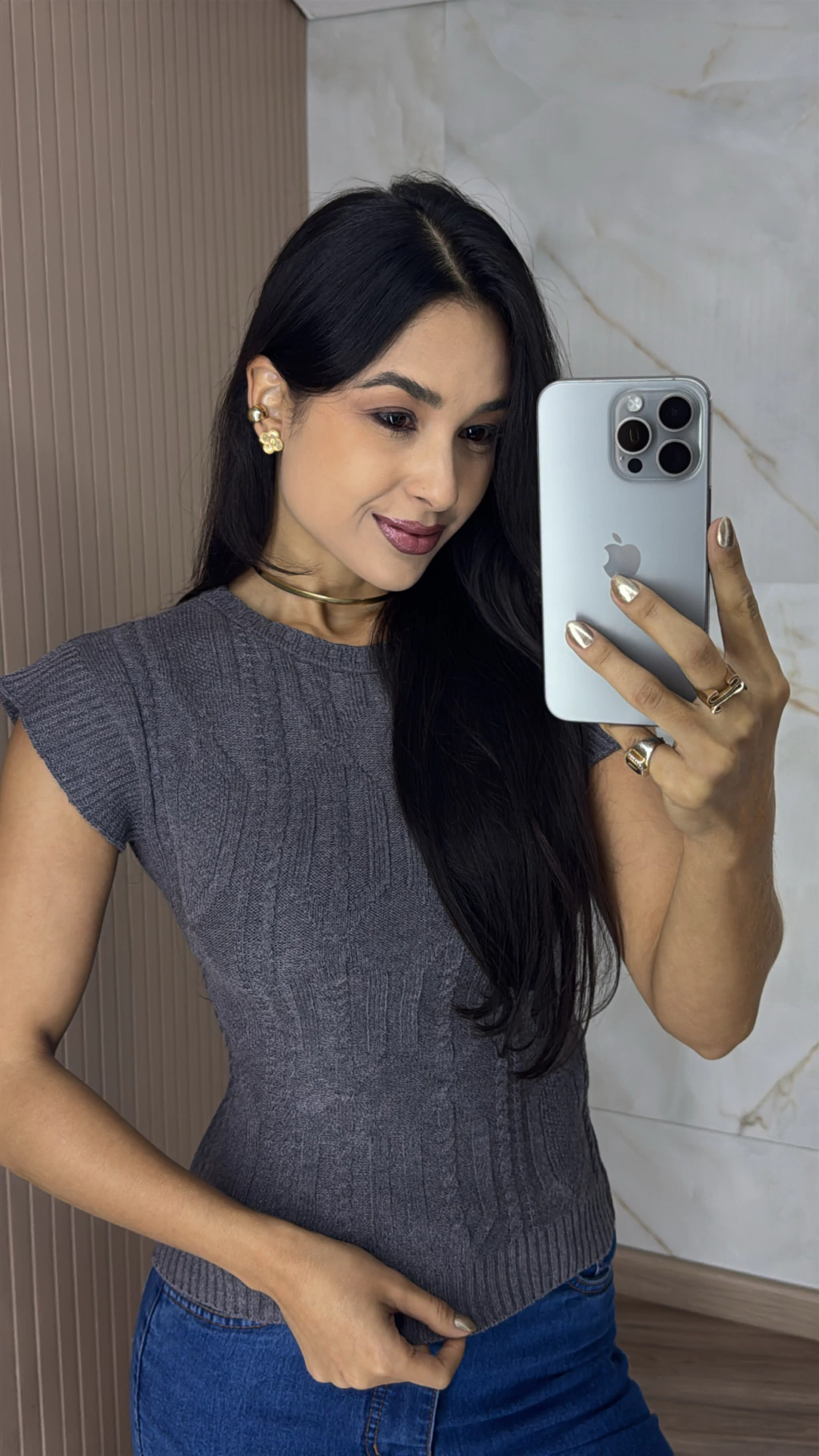 Combina com tudo: jeans, alfaiataria, saias ou até por baixo de blazers.