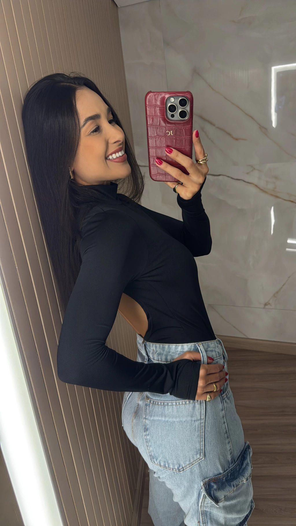 Descrição: O body poliamida decote nas costas é a peça chave para quem ama elegância com um toque de ousadia. O body possui mangas longas, é forrado no busto, gola alta, mangas longas e fechamento com colchetes. Possui encaixei para o dedo, este detalhe prático, garante que as mangas permaçam no lugar, evitando que a blusa suba e cause desconforto. O que proporciona maior liberdade de movimento e ainda traz um charme extra ao design, tornando a peça não só funcional, mas também estilosa.