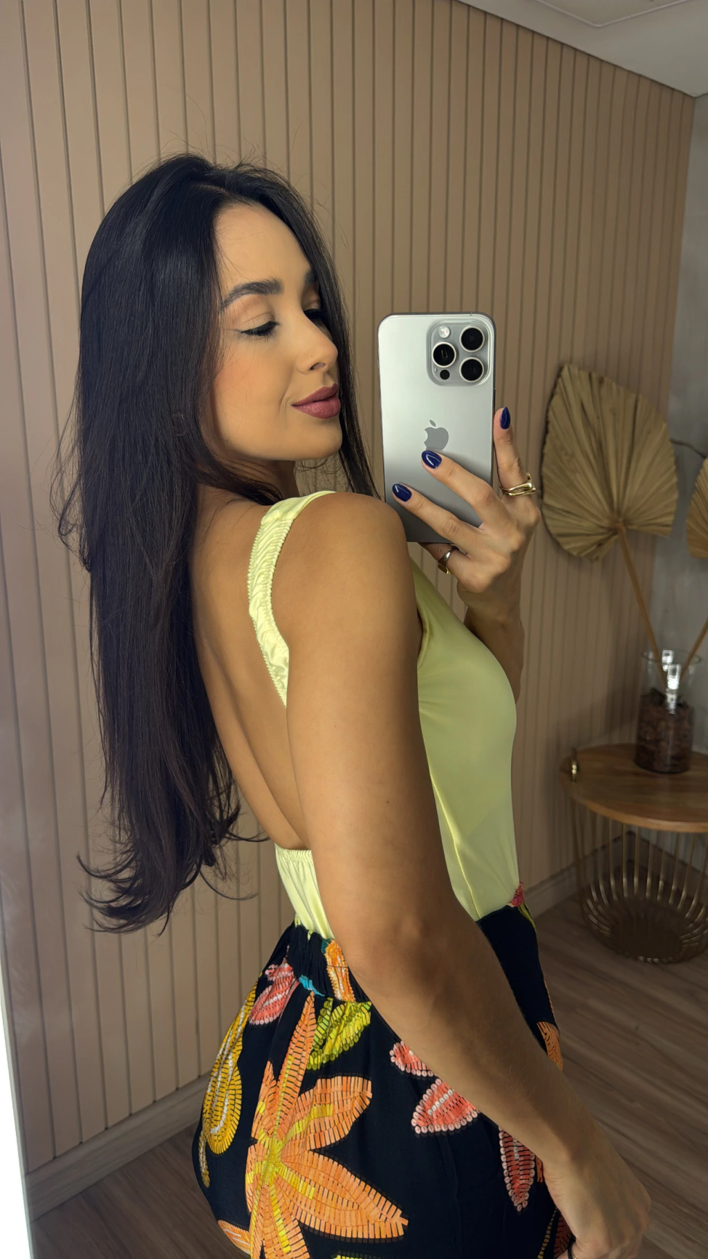 Confeccionado em suplex, o body tem um toque macio e uma elasticidade que se adapta perfeitamente ao seu corpo. As alças e o bojo embutido garantem sustentação e conforto, enquanto as costas nuas adicionam um toque de sensualidade e elegância à peça. O fechamento em colchetes na parte inferior oferece praticidade e segurança.