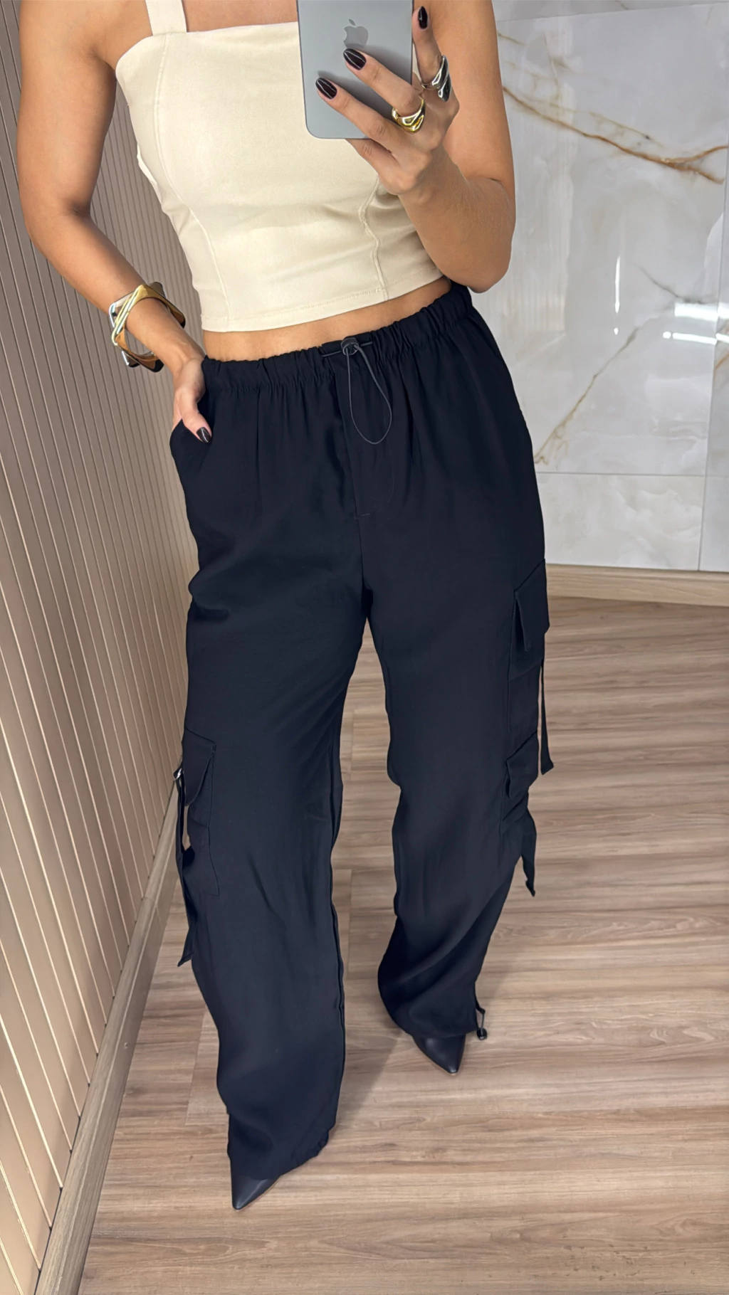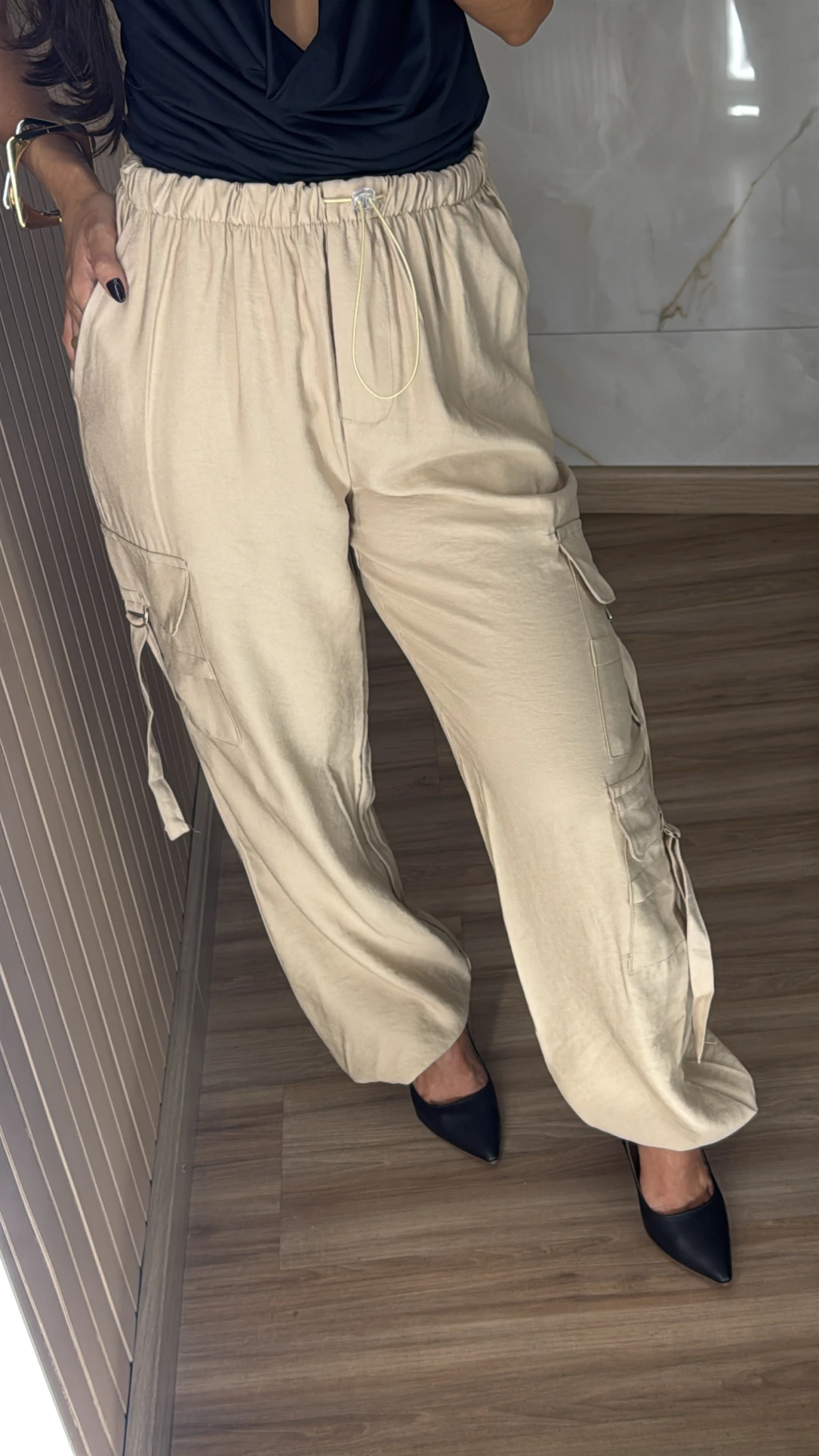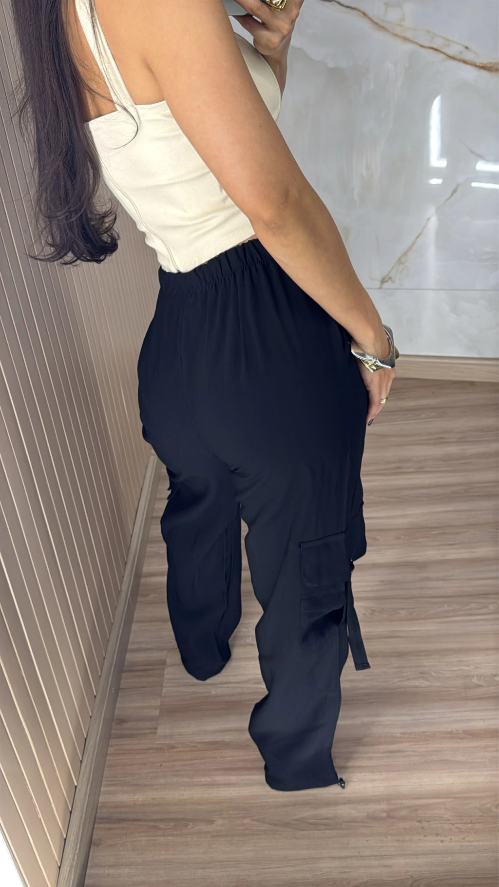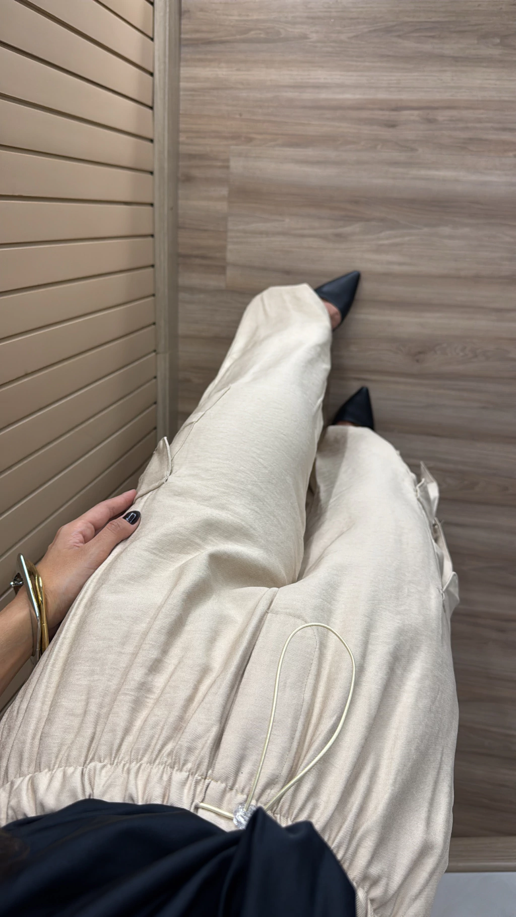 Descrição: Se você ama unir praticidade com estilo urbano e moderno, a Calça Cargo foi feita para você! Com a modelagem ampla e confortável, essa peça traz bolsos laterais funcionais e detalhes que adicionam atitude ao look. O tecido sarja oferece resistência, estrutura e um toque encorpado, mas sem abrir mão da leveza ao vestir, perfeita para acompanhar a sua rotina com estilo. O diferencial fica por conta do cós ajustável e a barra com regulagem, que permitem personalizar o caimento da peça conforme o seu estilo; mais soltinha ou com efeito “puxadinho” no tornozelo. A calça se adapta perfeitamente ao corpo e garante liberdade de movimento, além de proporcionar aquele visual despojado chique que a gente ama.