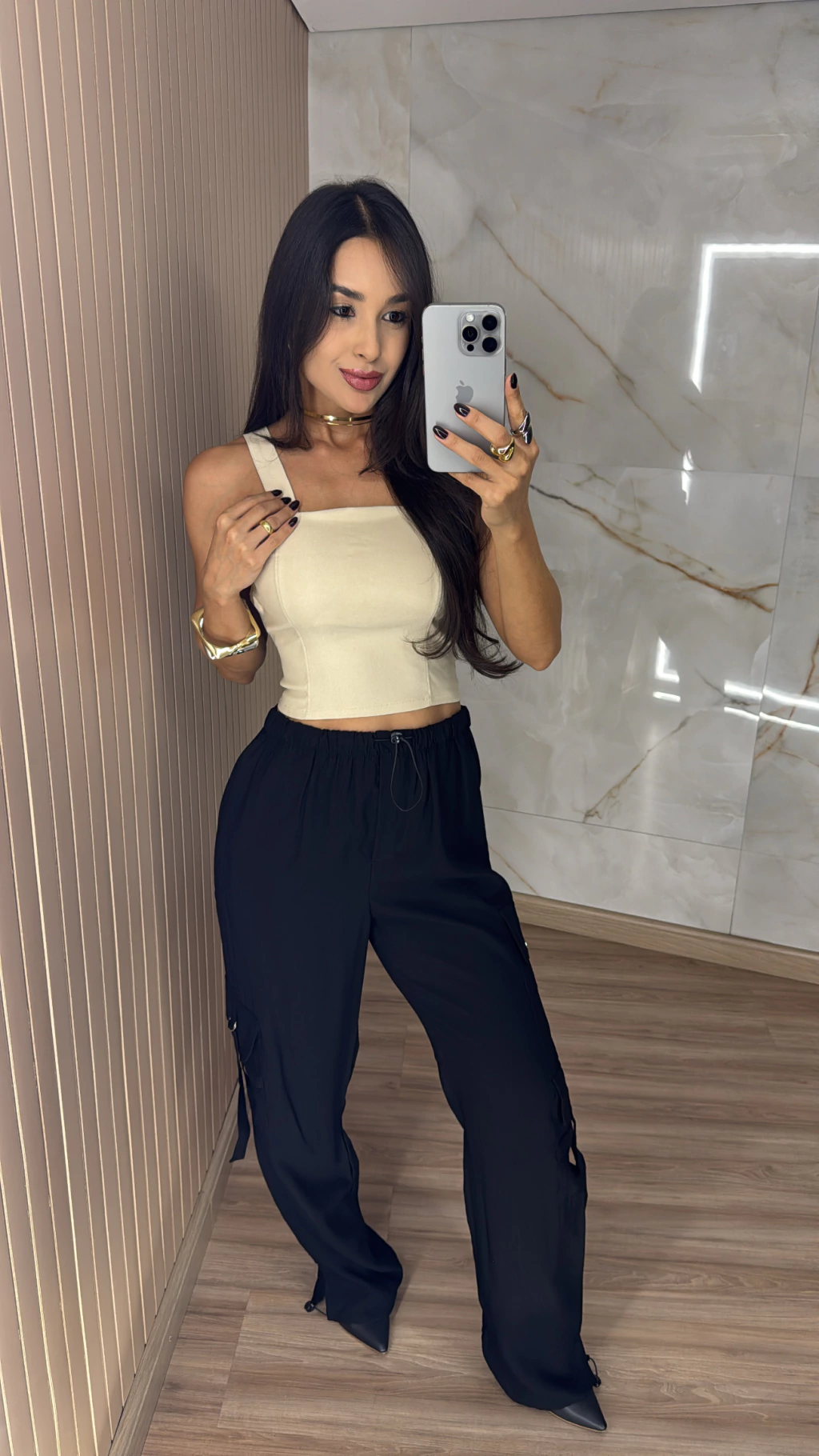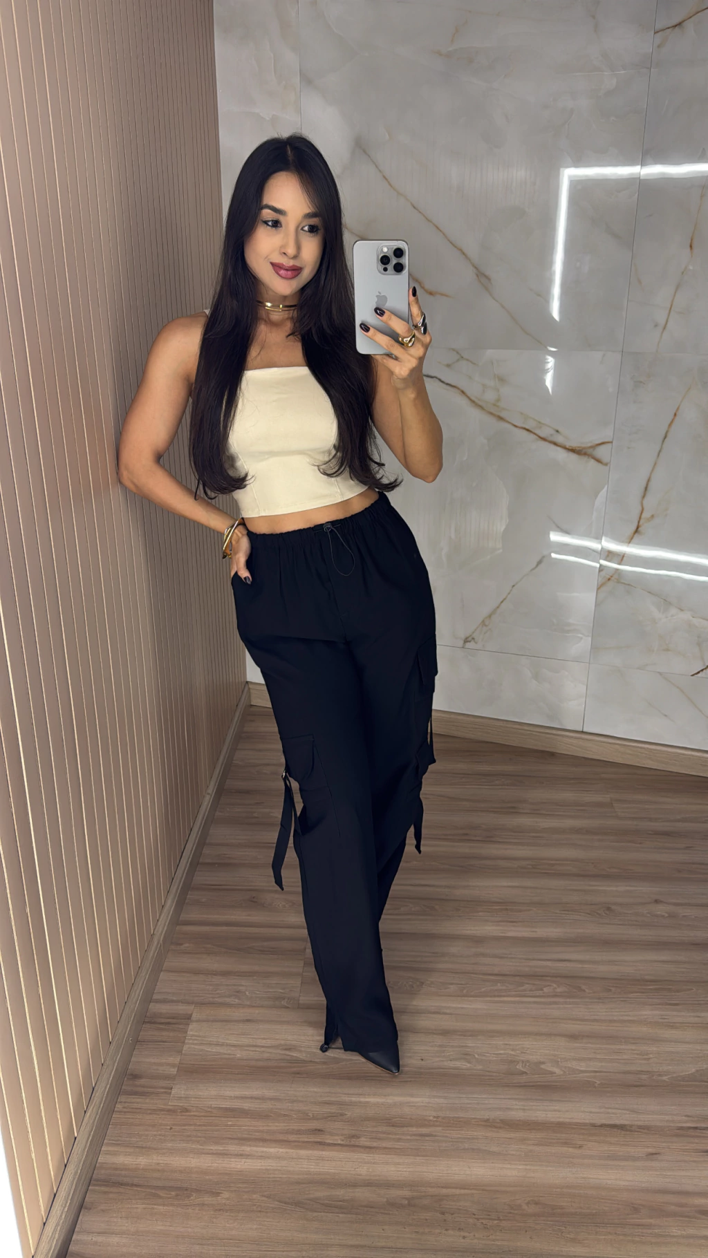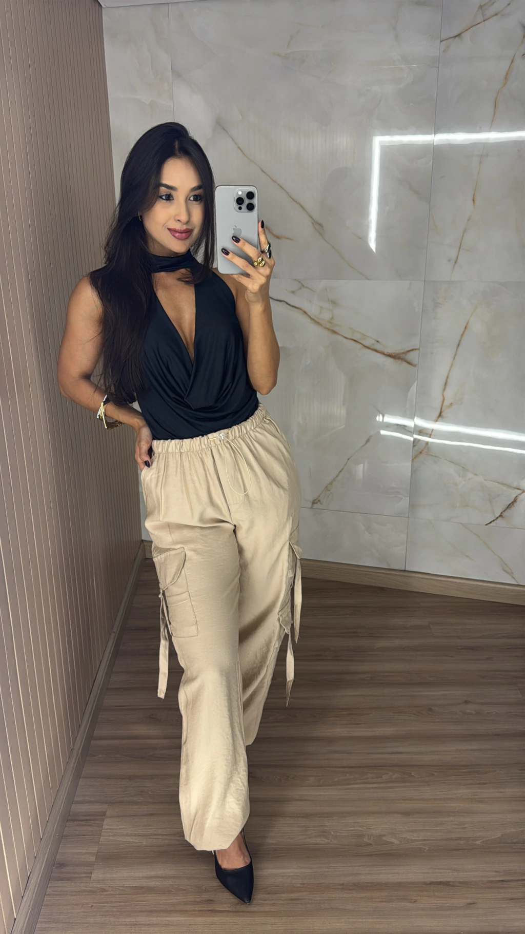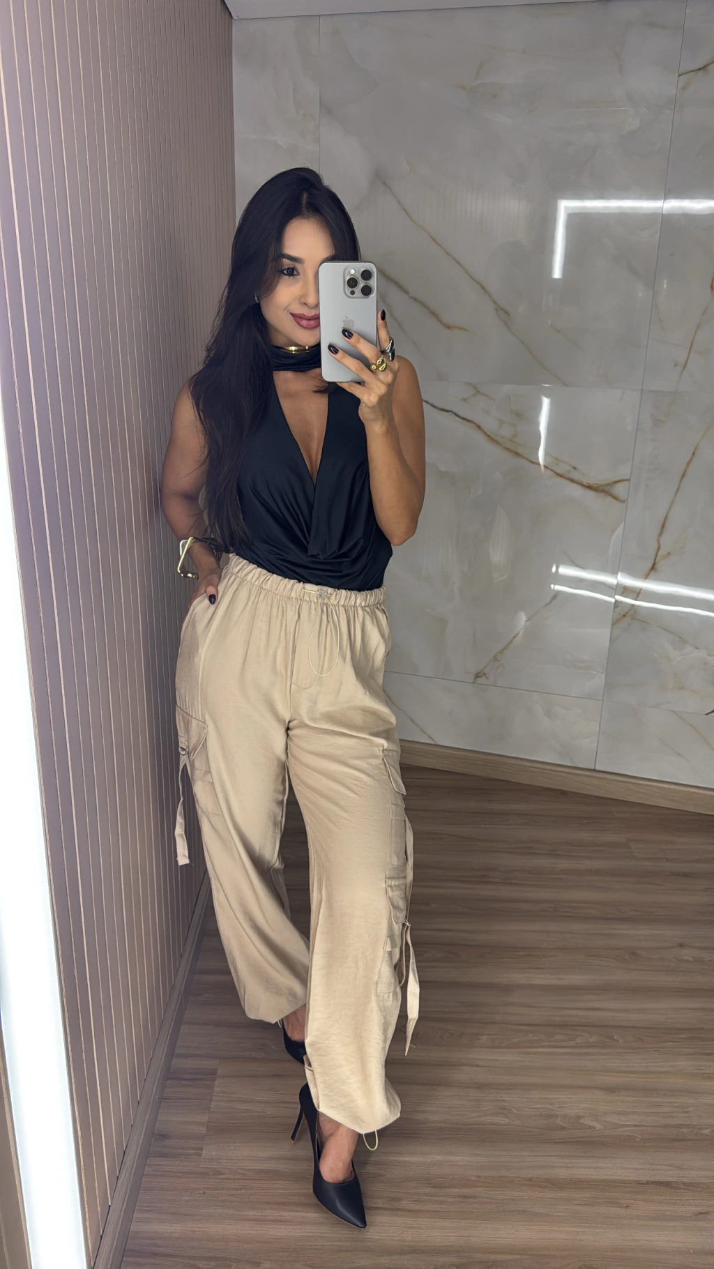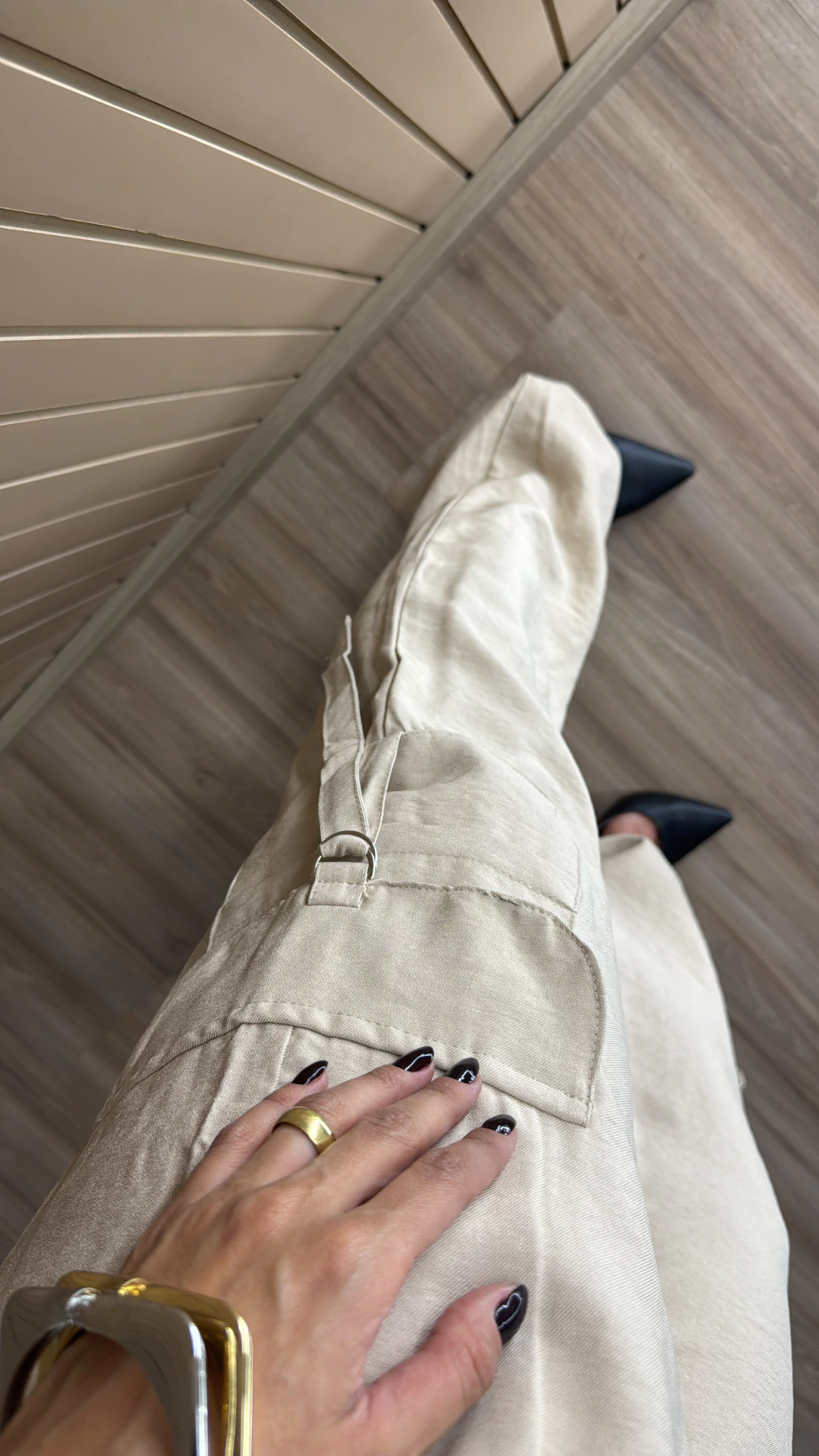 Descrição: Se você ama unir praticidade com estilo urbano e moderno, a Calça Cargo foi feita para você! Com a modelagem ampla e confortável, essa peça traz bolsos laterais funcionais e detalhes que adicionam atitude ao look. O tecido sarja oferece resistência, estrutura e um toque encorpado, mas sem abrir mão da leveza ao vestir, perfeita para acompanhar a sua rotina com estilo. O diferencial fica por conta do cós ajustável e a barra com regulagem, que permitem personalizar o caimento da peça conforme o seu estilo; mais soltinha ou com efeito “puxadinho” no tornozelo. A calça se adapta perfeitamente ao corpo e garante liberdade de movimento, além de proporcionar aquele visual despojado chique que a gente ama.
