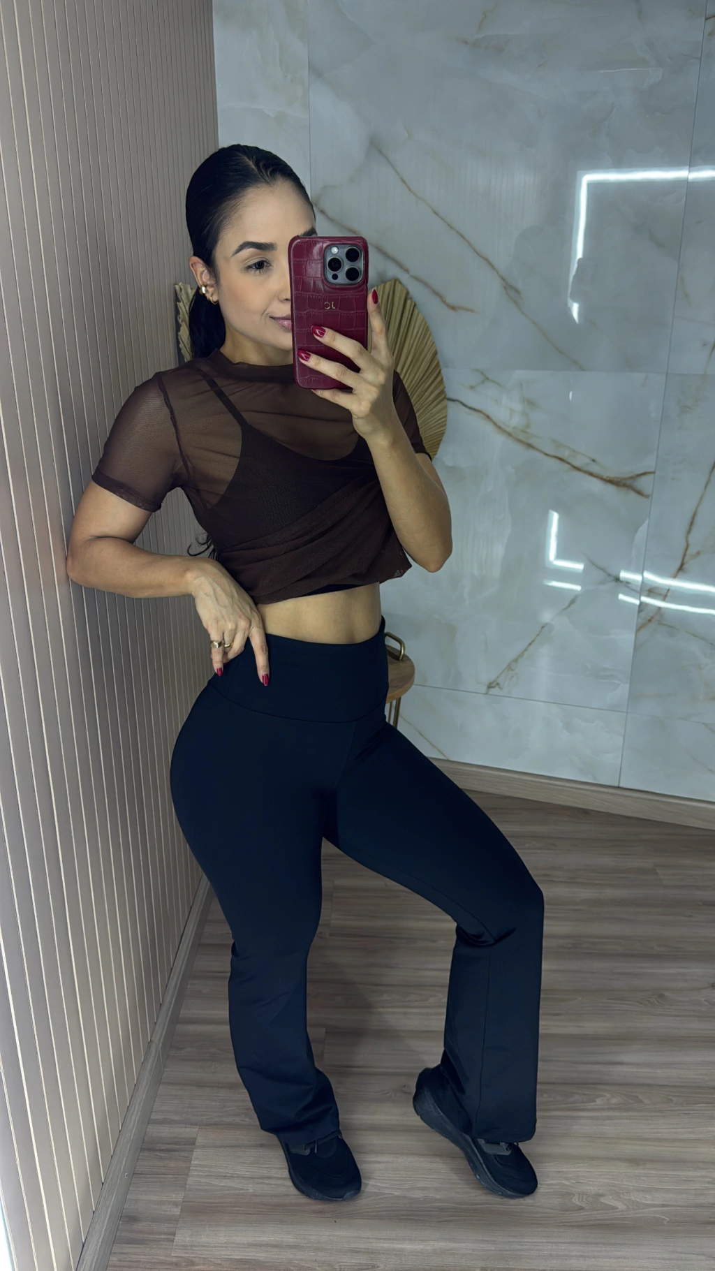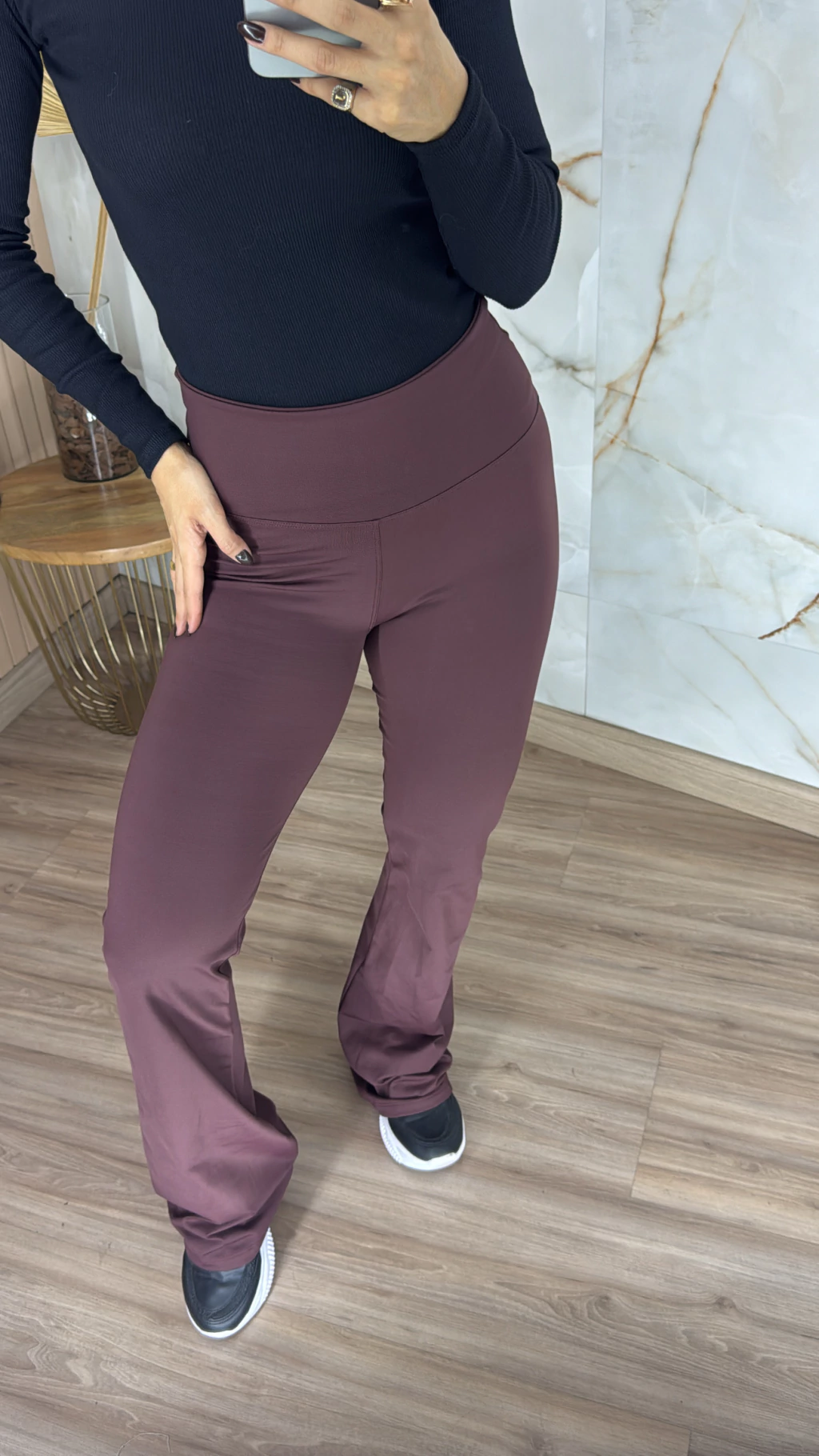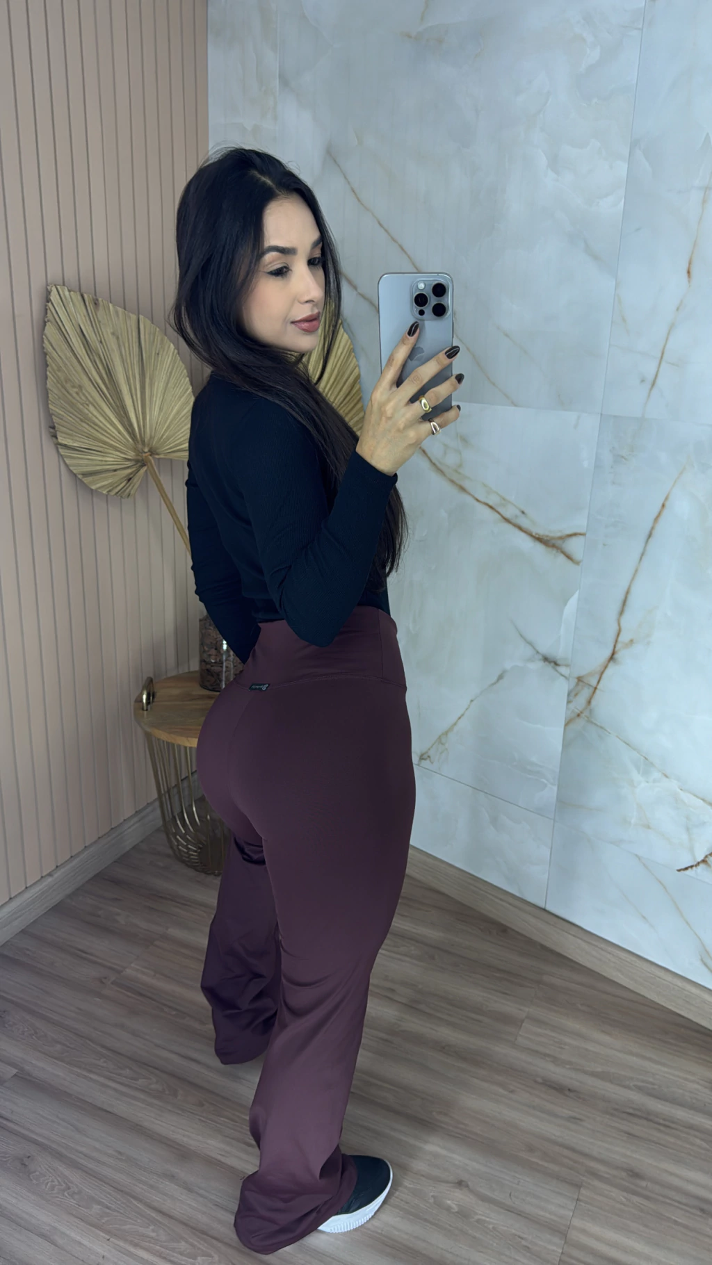 Descrição: A calça flare fit em tecido legging é aquela peça curinga que toda mulher merece ter no guarda-roupas. Com modelagem ajustada ao corpo até os joelhos e a clássica abertura flare na barra, ela alonga a silhueta, valoriza as curvas e proporciona um visual elegante sem abrir mão do conforto. Confeccionada em tecido legging de alta qualidade, com toque macio e elasticidade na medida certa, essa calça garante liberdade de movimento, ideal para o dia a dia, trabalho ou até mesmo composições mais elaboradas à noite.