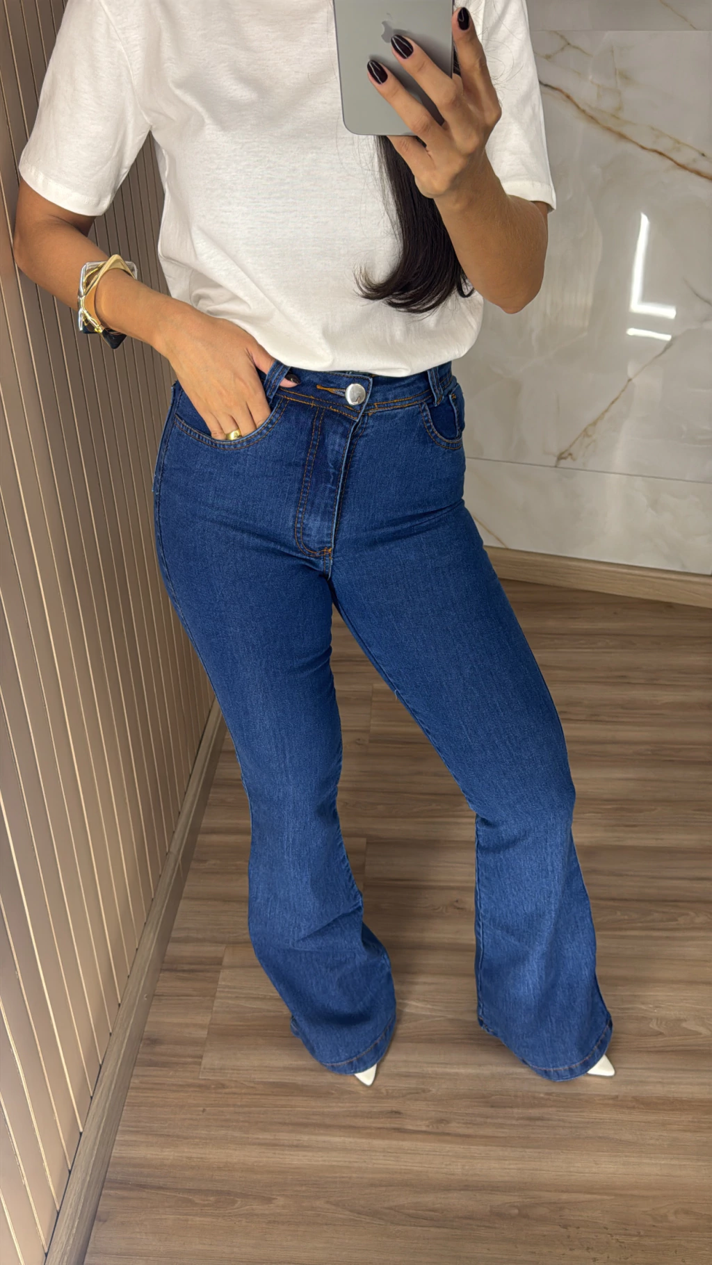 Descrição: Se você busca uma peça que valorize suas curvas, alongue a silhueta e traga um toque de sofisticação ao visual, a calça jeans flare é a escolha certa. Com a modelagem ajustada no quadril e barra levemente mais ampla, ela cria um efeito visual que equilibra as proporções do corpo e traz aquele ar de elegância natural, que nunca sai de moda. Ideal para quem deseja um jeans versátil, que transita facilmente entre produções casuais e looks mais elaborados.