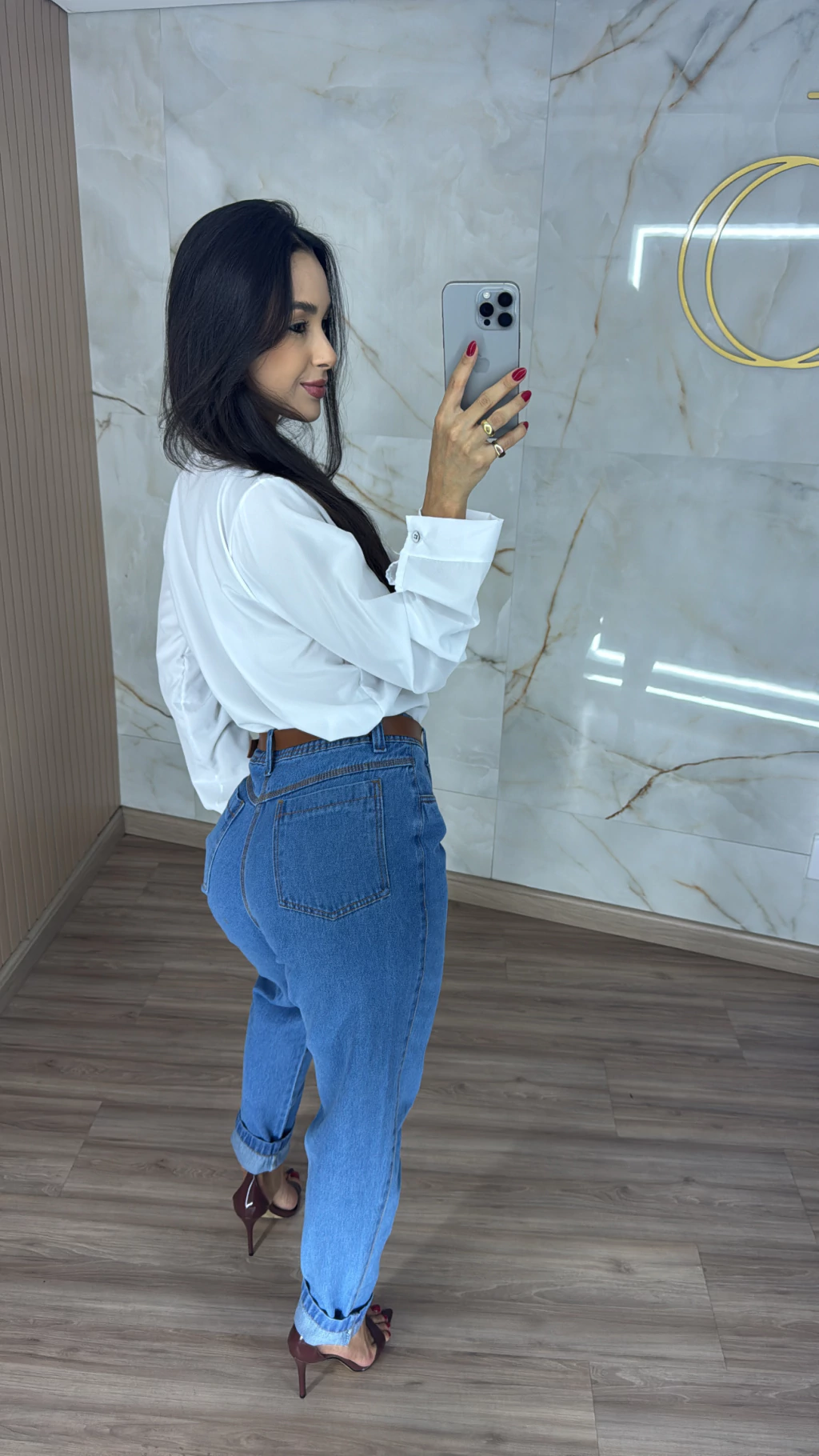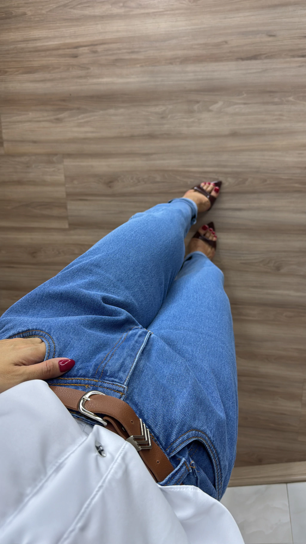 Descrição: Se você procura por uma calça que uma elegância, conforto e praticidade, acaba de encontrar a peça perfeita. A calça jeans mom é a queridinha do nosso guarda-roupas, ela se adapta a diversas ocasiões, do casual ao mais sofisticado. Confeccionada em jeans de alta qualidade, a peça possui uma modelagem soltinha, cintura alta e acabamento impecável e o melhor, acompanha o cinto.