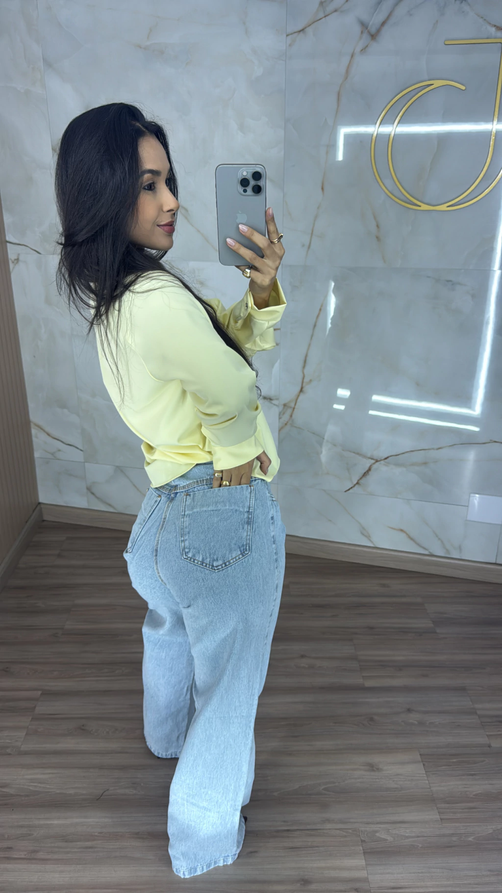 Descrição: O jeans perfeito para quem busca elegância, conforto e atitude. A Calça Wide Leg traz o equilíbrio entre moda e praticidade. Com a cintura alta, perna ampla e lavagem clássica, ela é a peça que alonga, valoriza a silhueta e transforma qualquer look básico em uma produção poderosa.