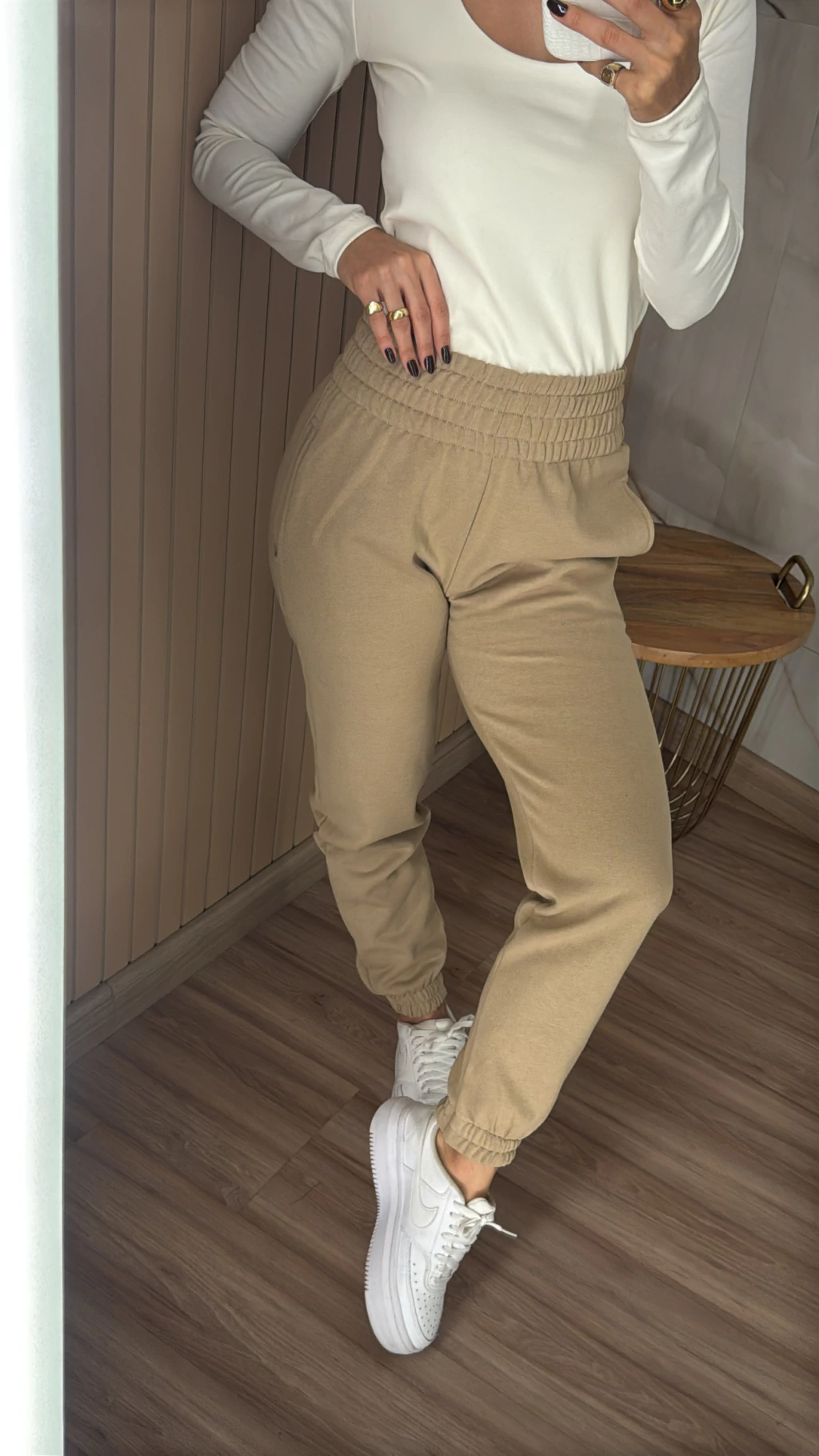 Modelagem jogger: Pernas afuniladas com punhos ajustados para visual moderno.