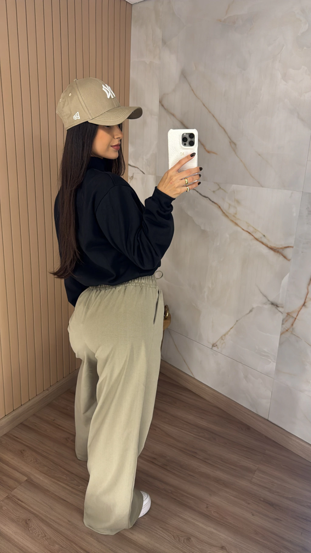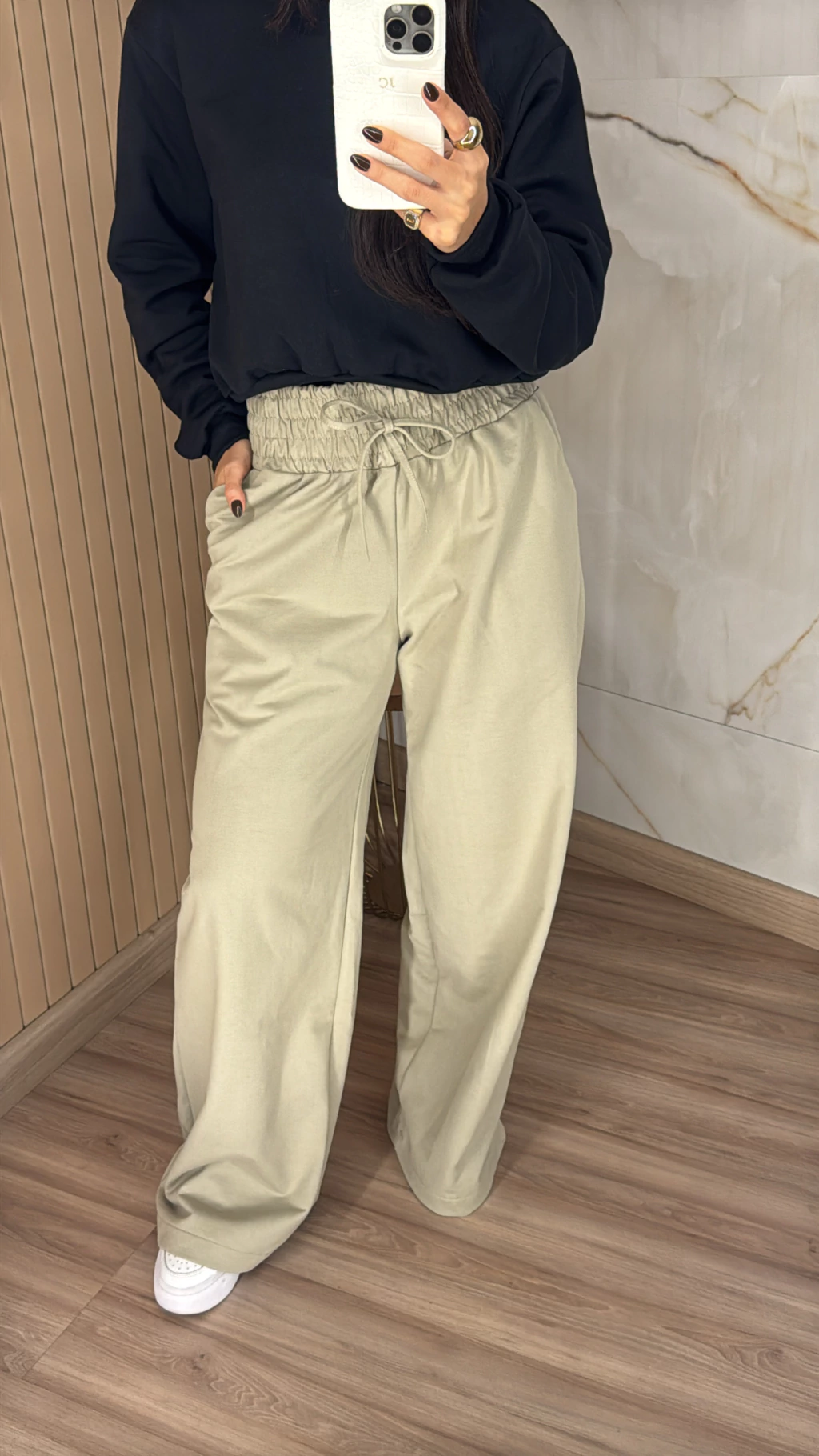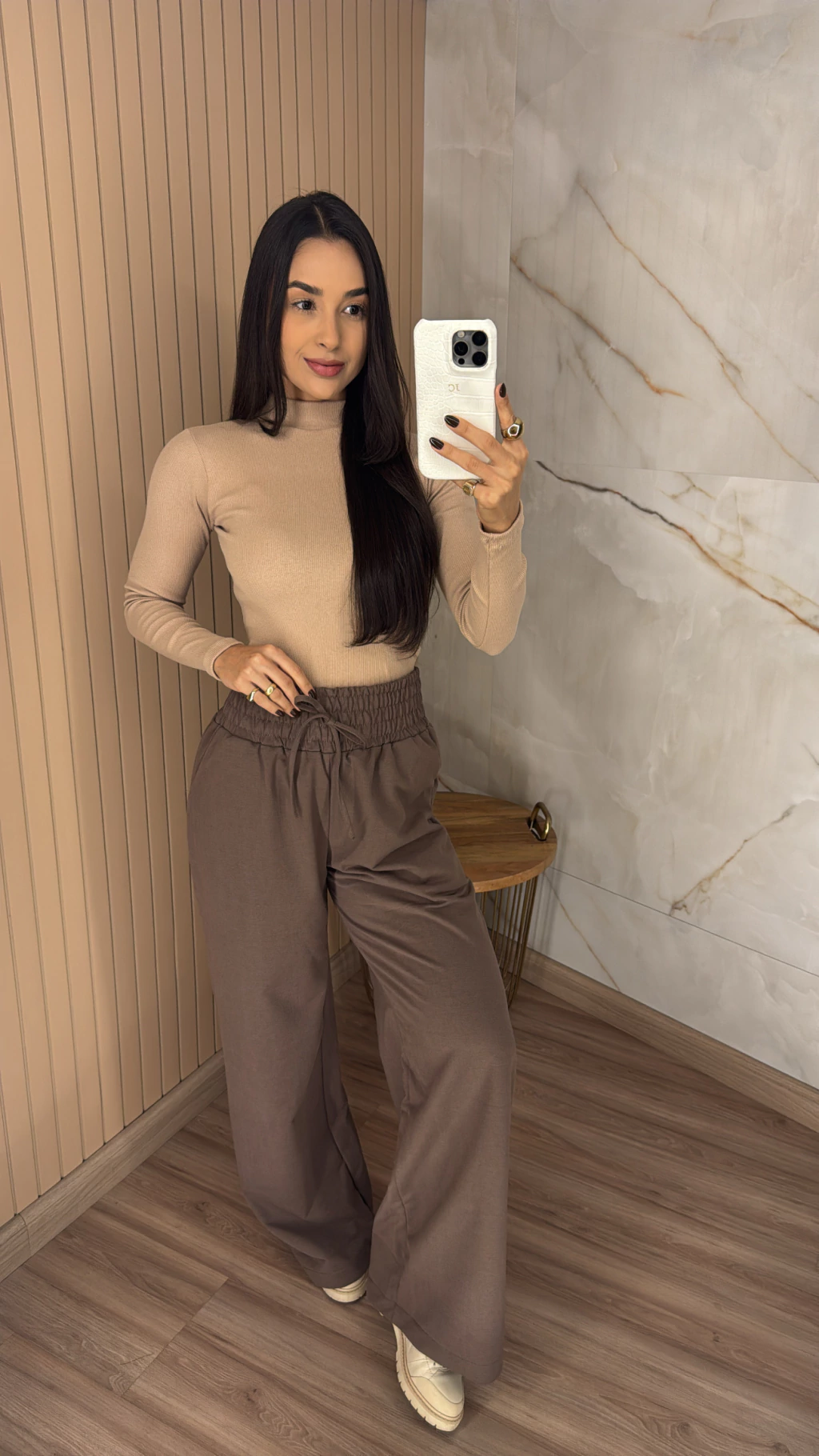 Modelagem pantalona: Pernas amplas para visual moderno.