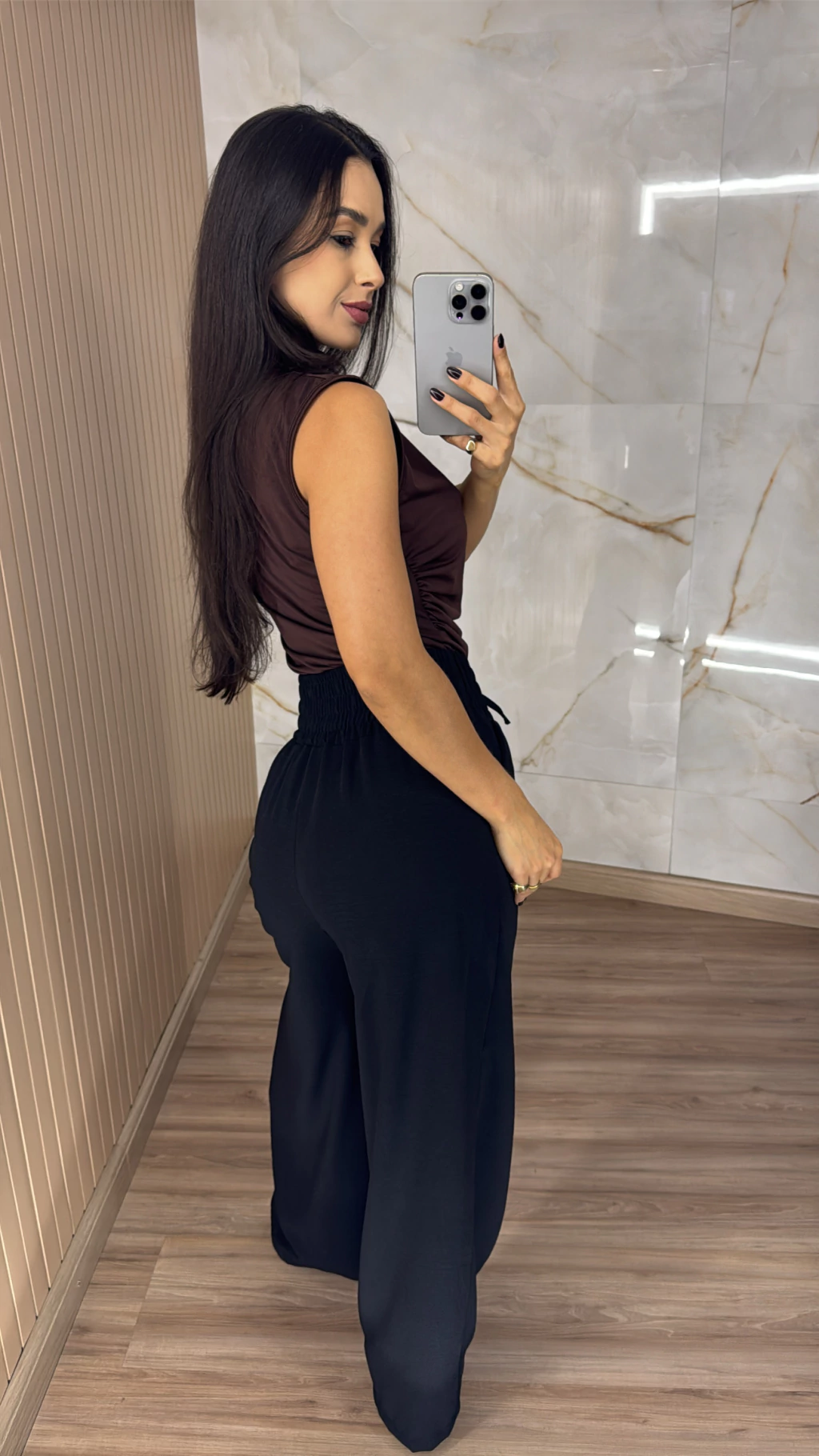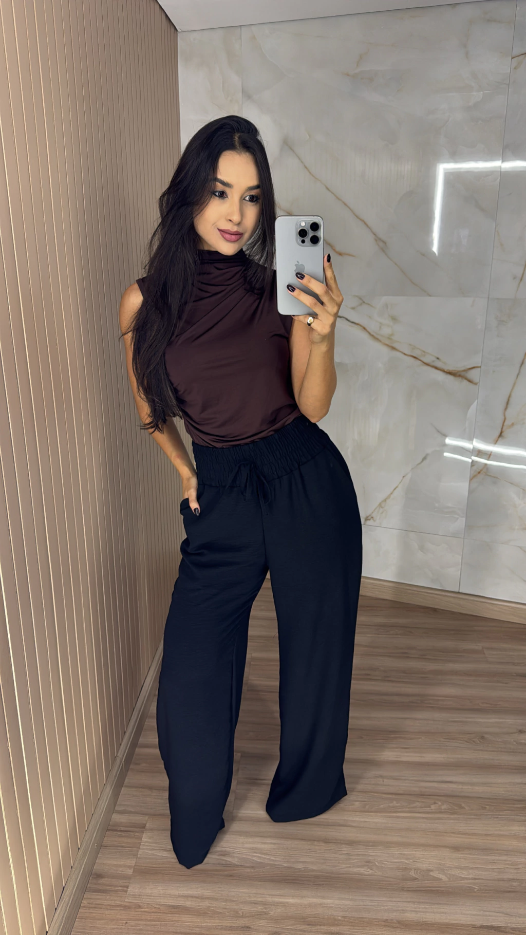 Descrição: Para mulheres que não abrem mão de sofisticação sem deixar o conforto de lado, a Calça Pantalona em tecido Duna, é a peça perfeita para compor looks elegantes, leves e cheio de estilo. O tecido duna, conhecido por seu caimento impecável, toque suave e aparência sofisticada, a calça é sinônimo de versatilidade. O cós com elástico garante um ajuste confortável ao corpo, outro grande diferencial é o forro interno, que proporciona total segurança ao vestir, evitando transparências e garantindo liberdade de movimento com descrição e elegância. Perfeita para ser usada com regatas, camisas ou croppeds, ela transita com facilidade do trabalho ao look despojado, do casual ao evento noturno, mudando apenas os acessórios.