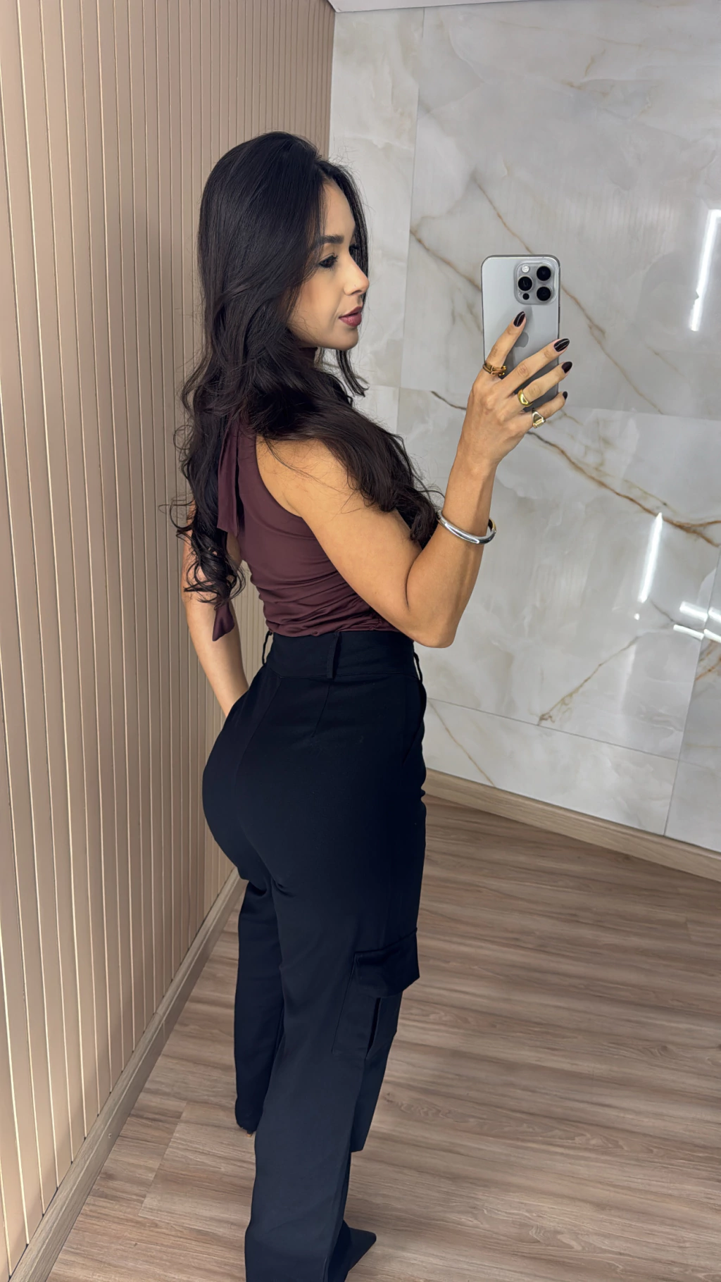 Cintura alta: valoriza a cintura e permite combinações com croppeds, camisetas, bodys ou camisas para um visual mais sofisticado.