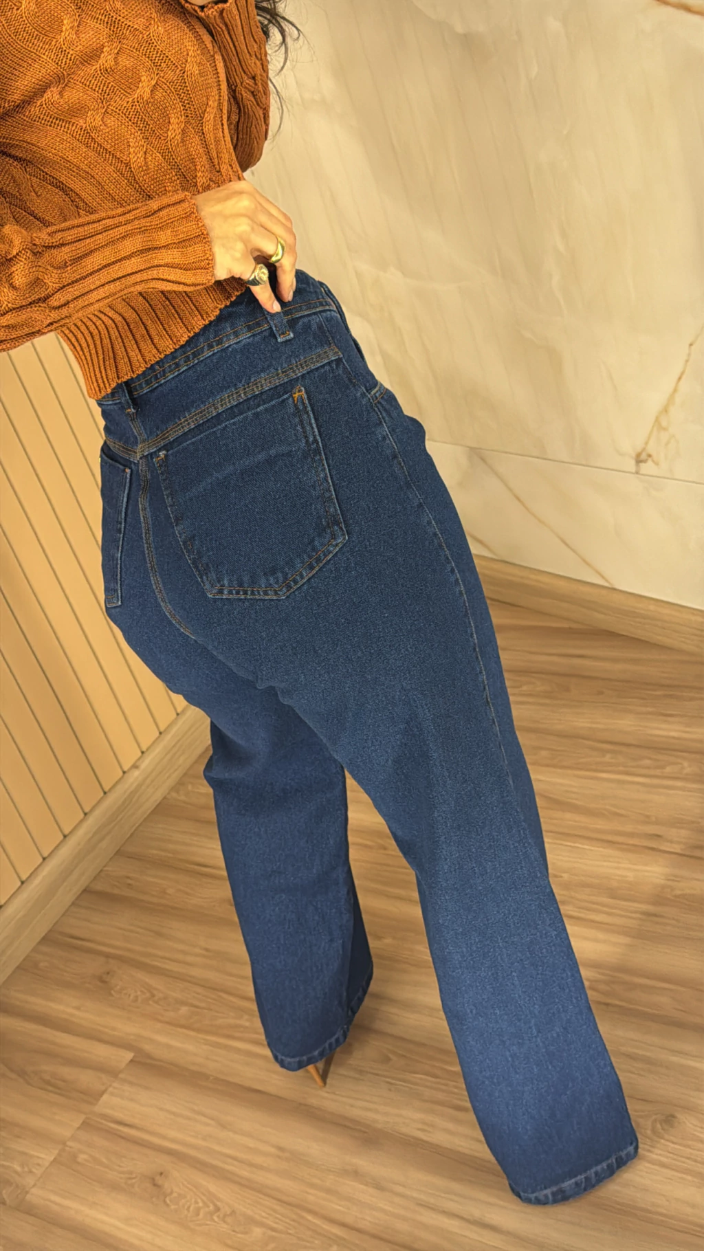 Descrição: O jeans perfeito para quem busca elegância, conforto e atitude. A Calça Wide Leg traz o equilíbrio entre moda e praticidade. Com a cintura alta, perna ampla e lavagem clássica, ela é a peça que alonga, valoriza a silhueta e transforma qualquer look básico em uma produção poderosa.