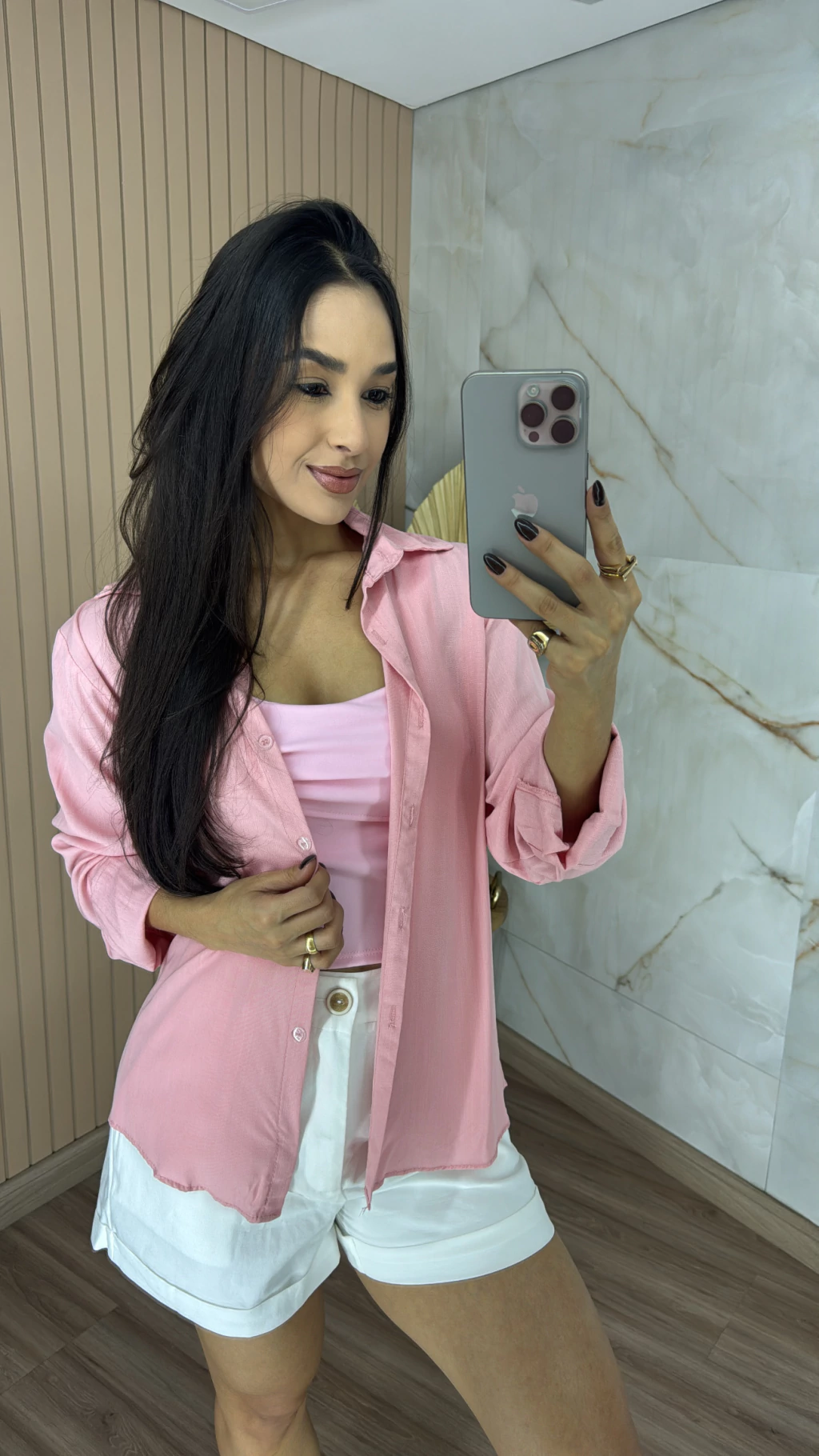 Descrição: A camisa perfeita para unir elegância, leveza e versatilidade no seu dia a dia. Confeccionada em viscolinho, tecido leve e com excelente respirabilidade, essa peça é ideal para te acompanhar em todas as estações com muito conforto e estilo. O modelo possui fechamento frontal com botões transparentes, que dão um toque sutil e sofisticado ao visual, além de permitir diferentes formas de uso; aberta como terceira peça, fechada para looks mais clássicos ou até mesmo com amarração frontal para um mood mais despojados. Com a modelagem soltinha, ela proporciona liberdade de movimentos e é uma ótima opção para compor desde produções casuais até looks modernos.