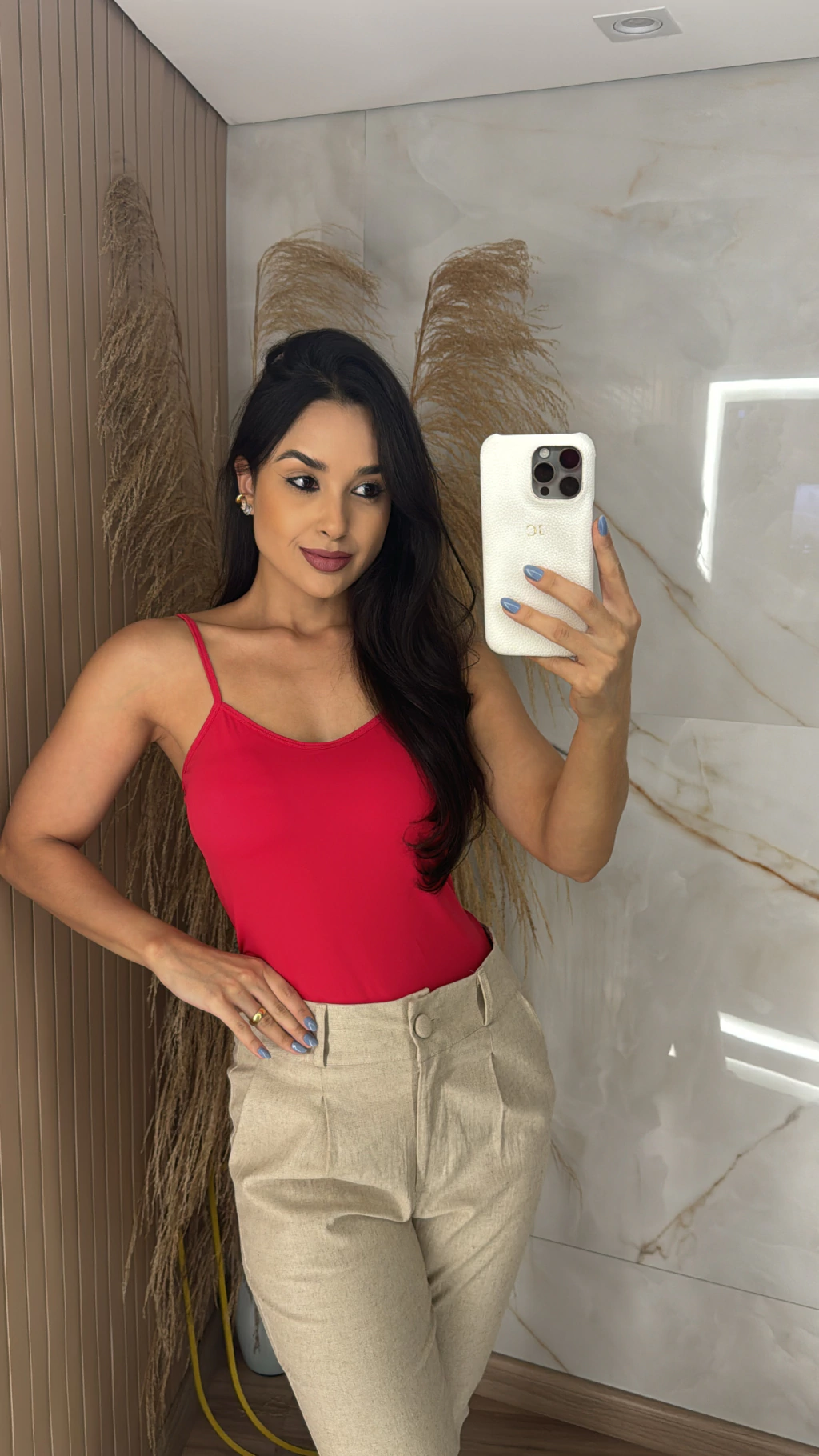 Blusa em tecido poliamida, contém bojo e alças finas.