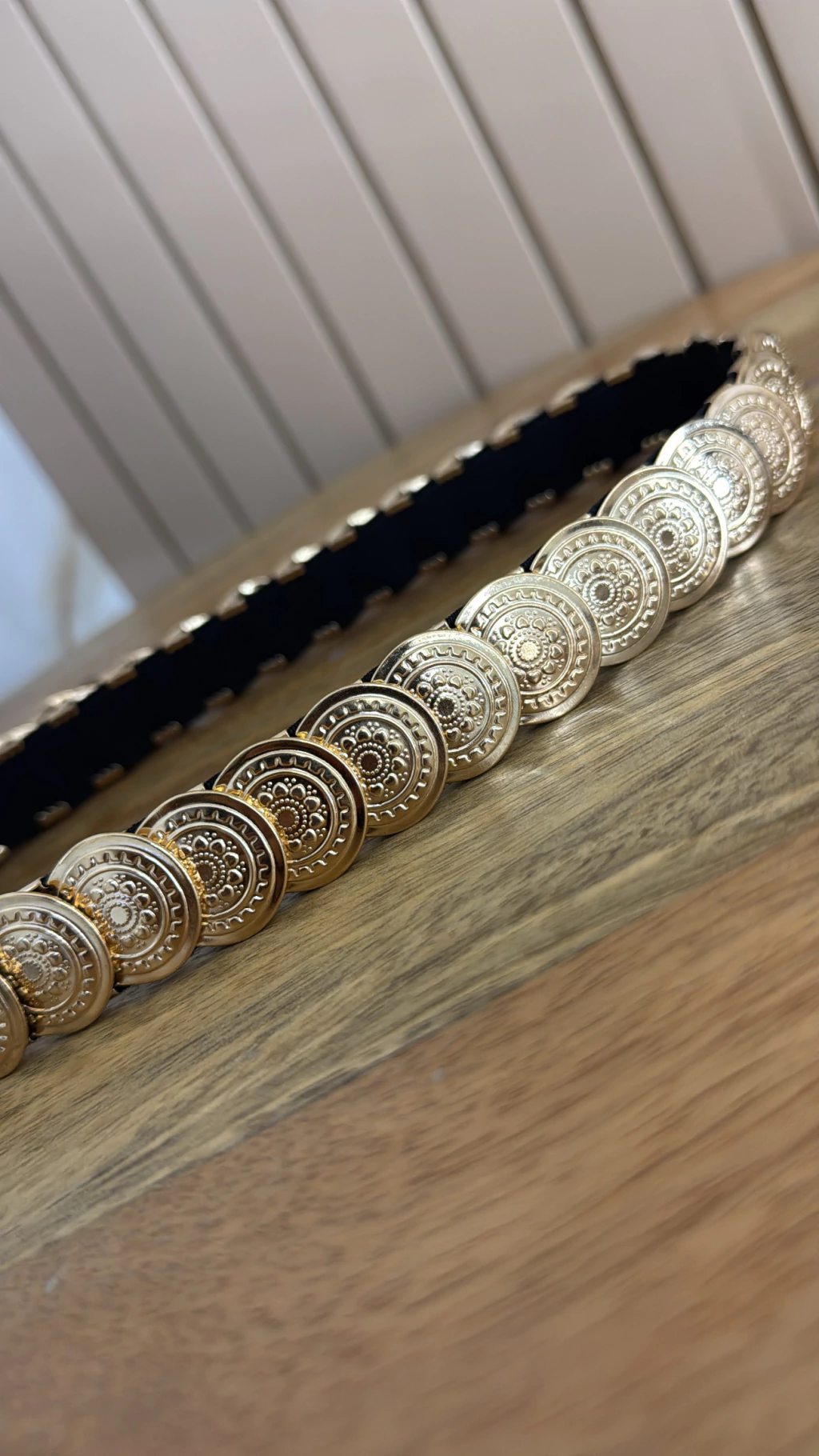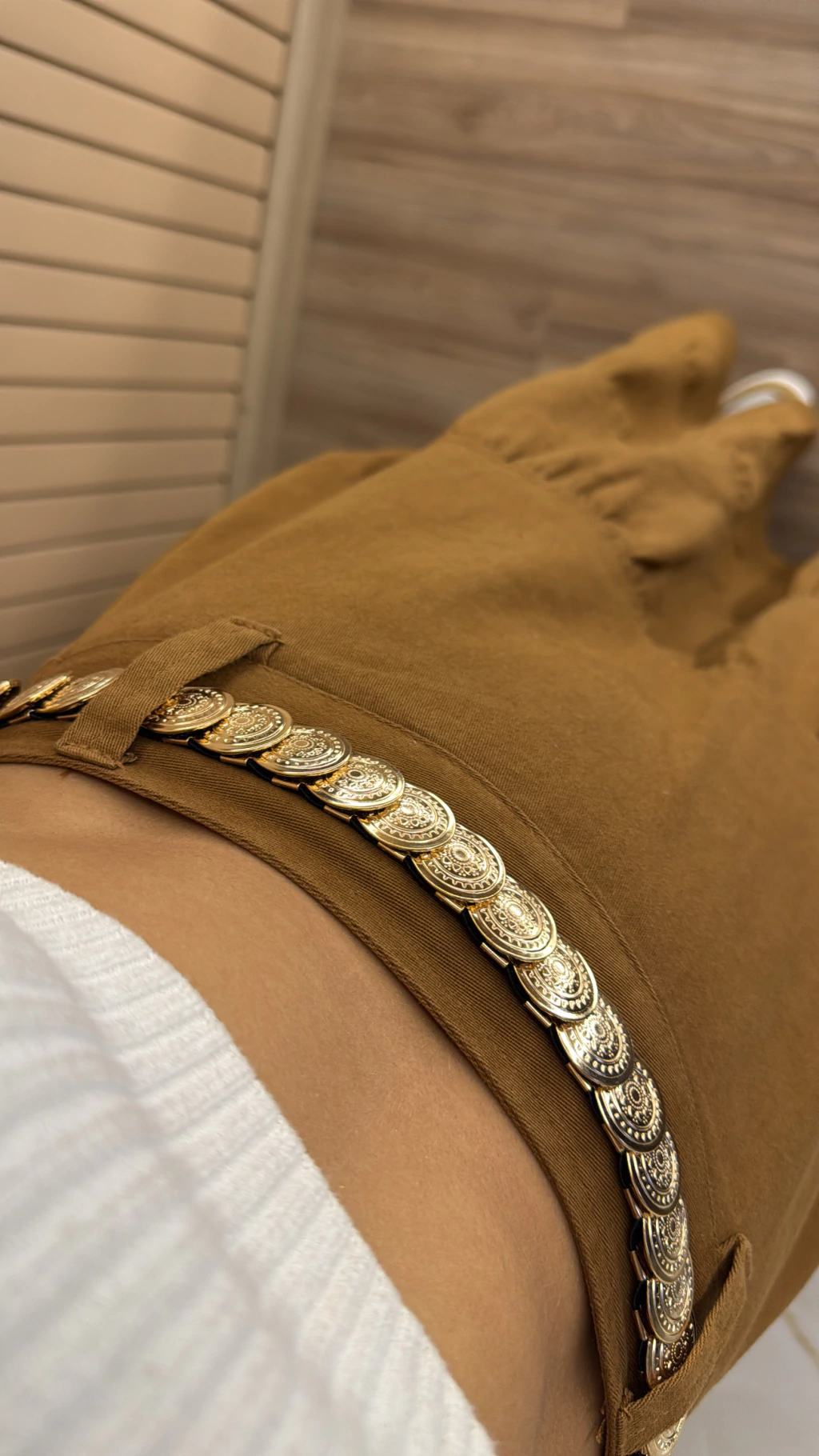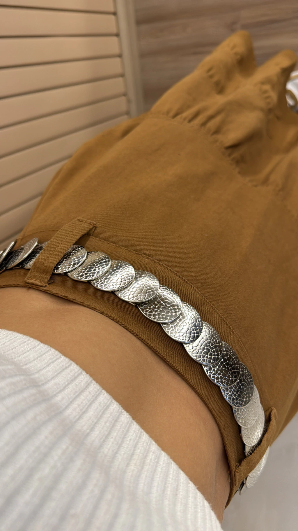 Quer dar um UP no visual com um acessório cheio de personalidade? O cinto moeda é a peça-chave que faltava no seu guarda-roupas. Com detalhes em moedas metálicas que remetem ao estilo boho chic, ele traz um charme único e sofisticado para qualquer produção. É possível ser usados com vestidos, saias, jeans ou até mesmo por cima de peças mais soltinhas como por exemplo chemises. É aquele tipo de acessório que chama atenção sem esforço.