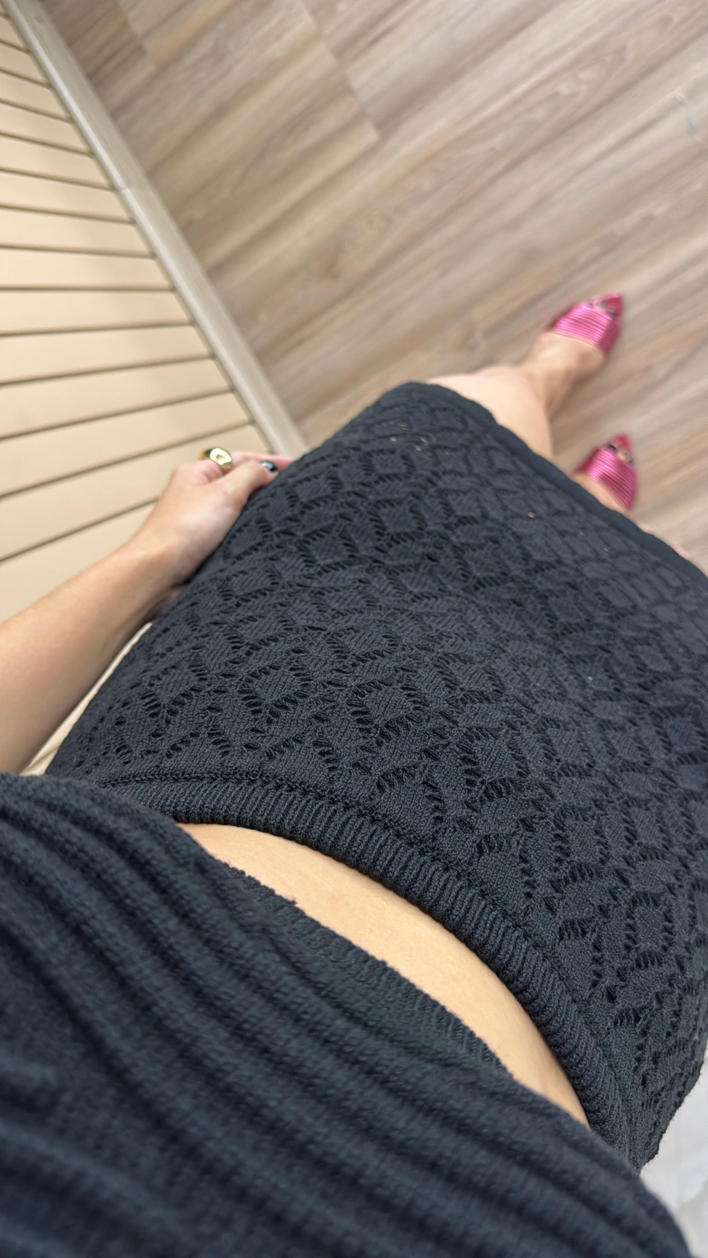 O conjunto é composto por cropped com mangas curtas e saia com forro.