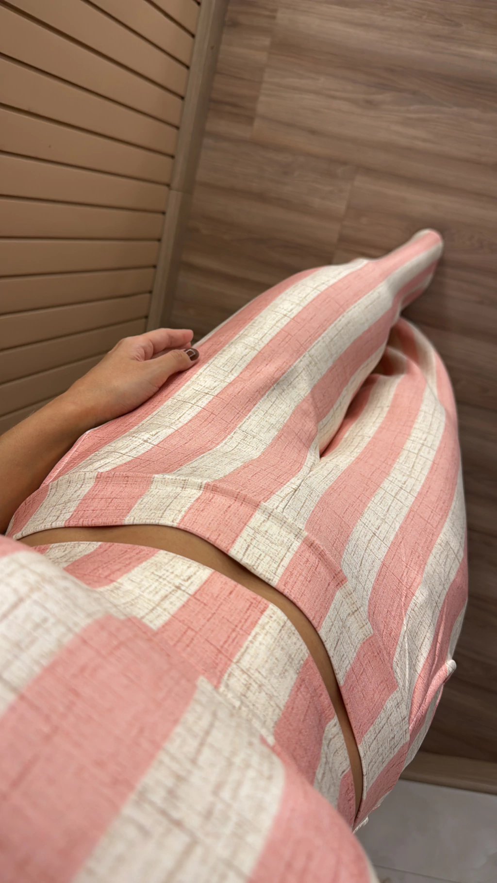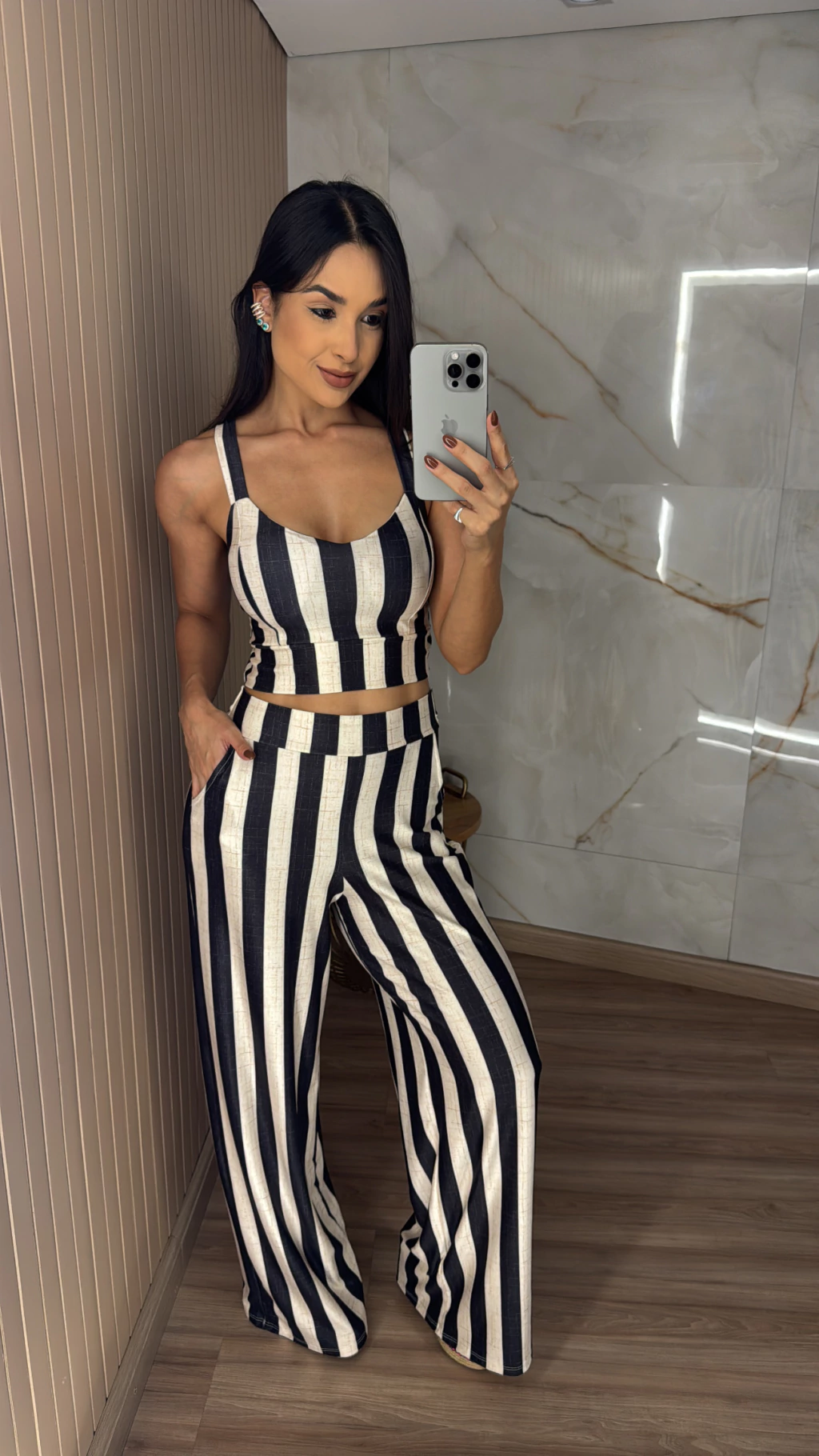 Busto: 32cm | Comprimento do cropped (Sem considerar a alça): 25cm | Cintura: 34cm (mínimo) | Comprimento da calça: 1,05m