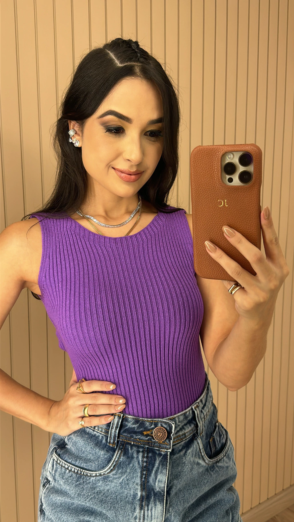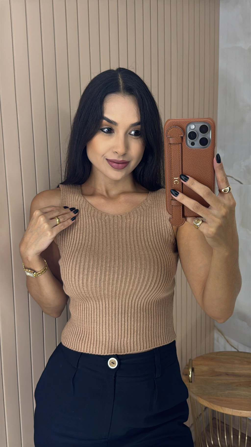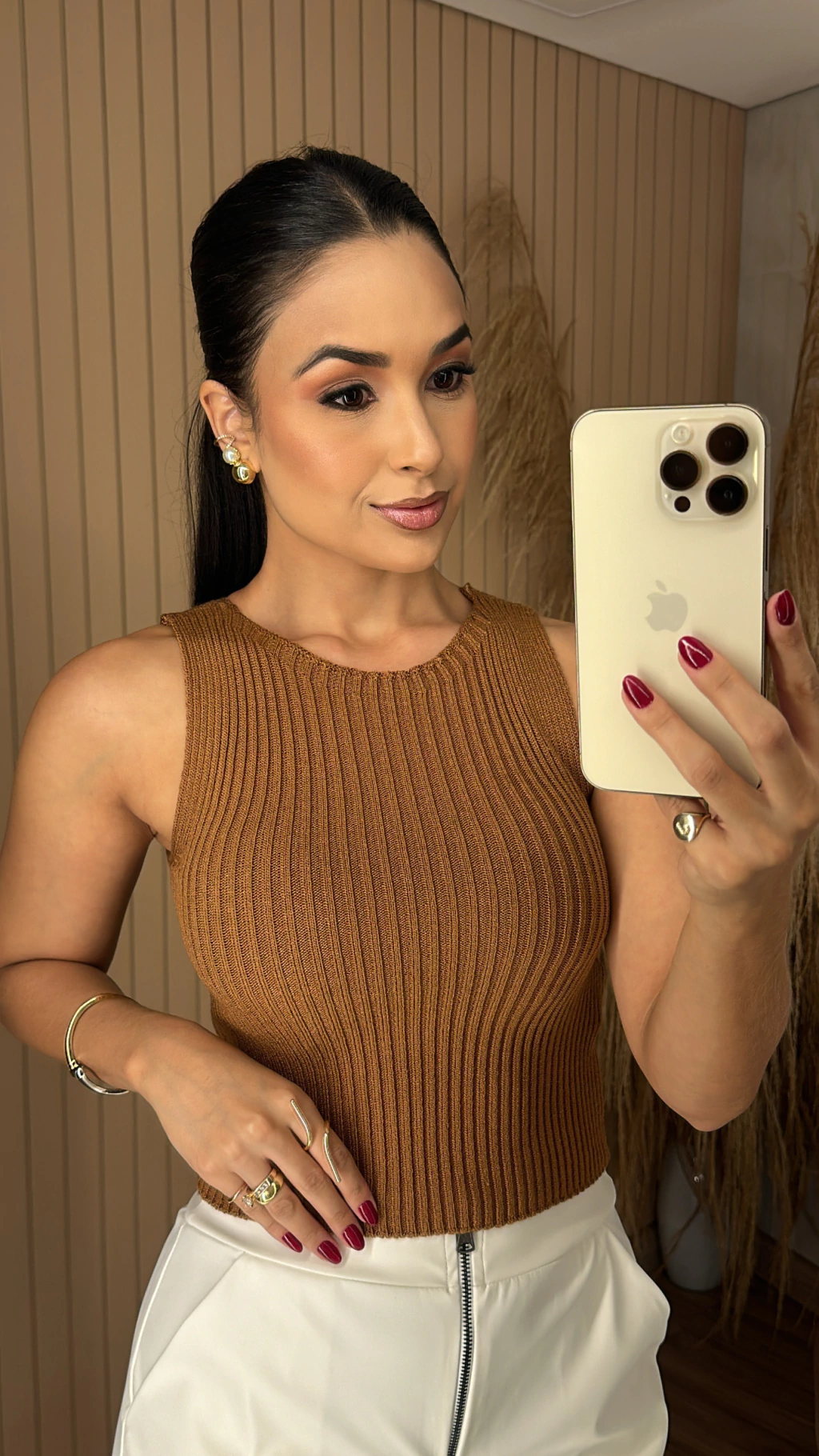 Cropped em tricot modal, modelo regata, gola arredonada.