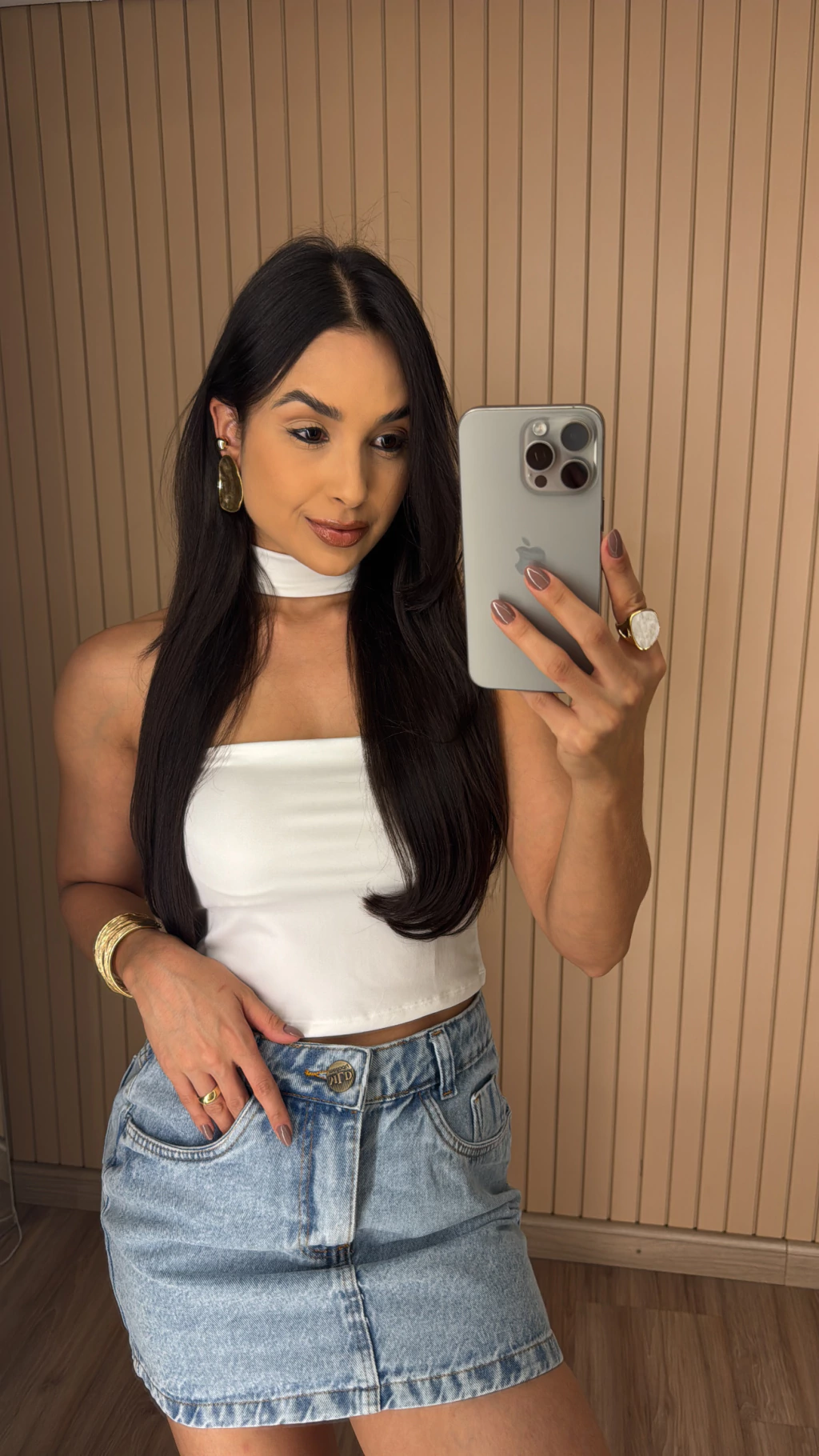 Descrição: A peça perfeita para quem busca um look sofisticado, moderno e com aquele toque fashionista. O cropped é confeccionado em poliamida premium, um tecido de altíssima qualidade, com toque macio, elasticidade ideal e caimento impecável no corpo. O modelo vem com detalhe de gola estilo choker, que traz uma pegada atual e elegante, perfeita para composições noturnas ou para transformar produções básicas em visuais cheios de personalidade.
