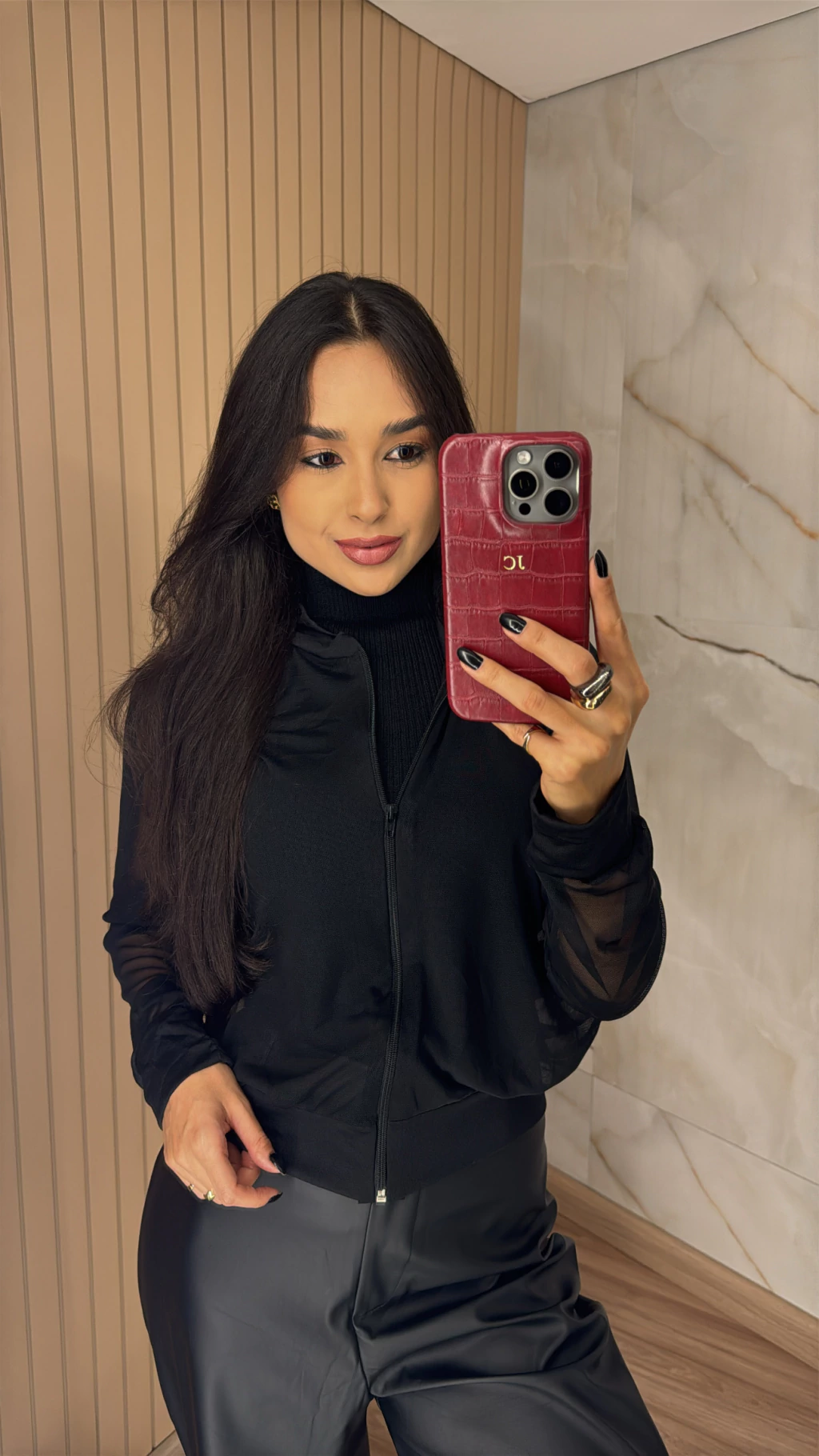 Descrição: a Jaqueta em tule é a escolha ideal para quem quer dar um toque fashion e ousado ao visual, sem abrir mão do conforto. Moderna, leve e com uma transparência estratégica, ela é perfeita para compor looks versáteis e cheios de personalidades.