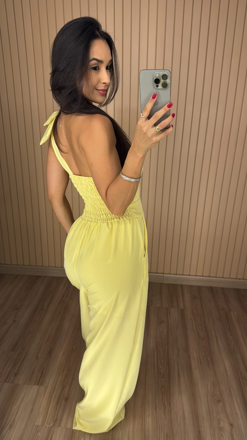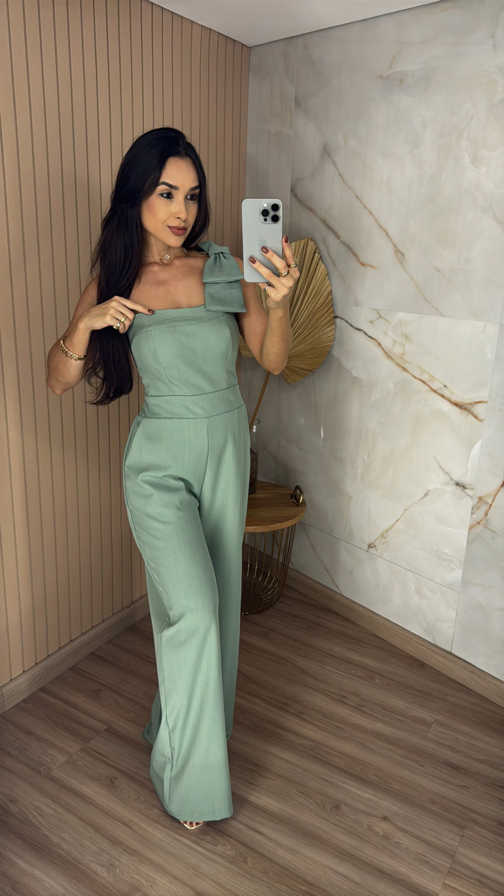 Utilize o seu Macacão Alfaiataria Ombro Só com sandálias de salto e acessórios que complementem o visual para um evento noturno. Para um look mais descontraído, aposte em rasteiras ou tênis. Esta peça é a escolha ideal para quem busca praticidade, conforto e um visual poderoso.