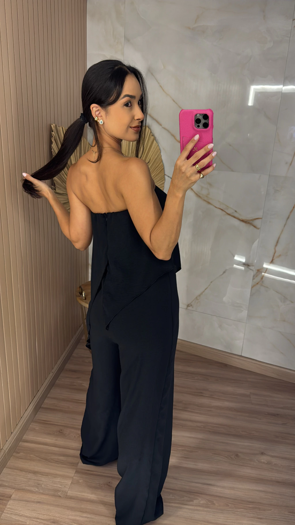 Descrição: Macacão Pantalona Assimétrico: Elegância e Modernidade em Duna
