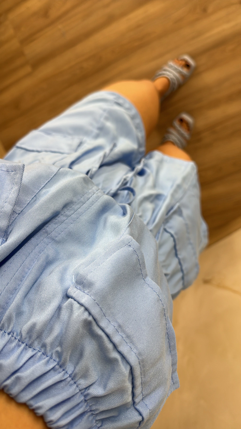 Descrição: o macaquinho cargo é sem alça, possui eslástico e amarração na cintura, bolsos na parte do busto e no short.