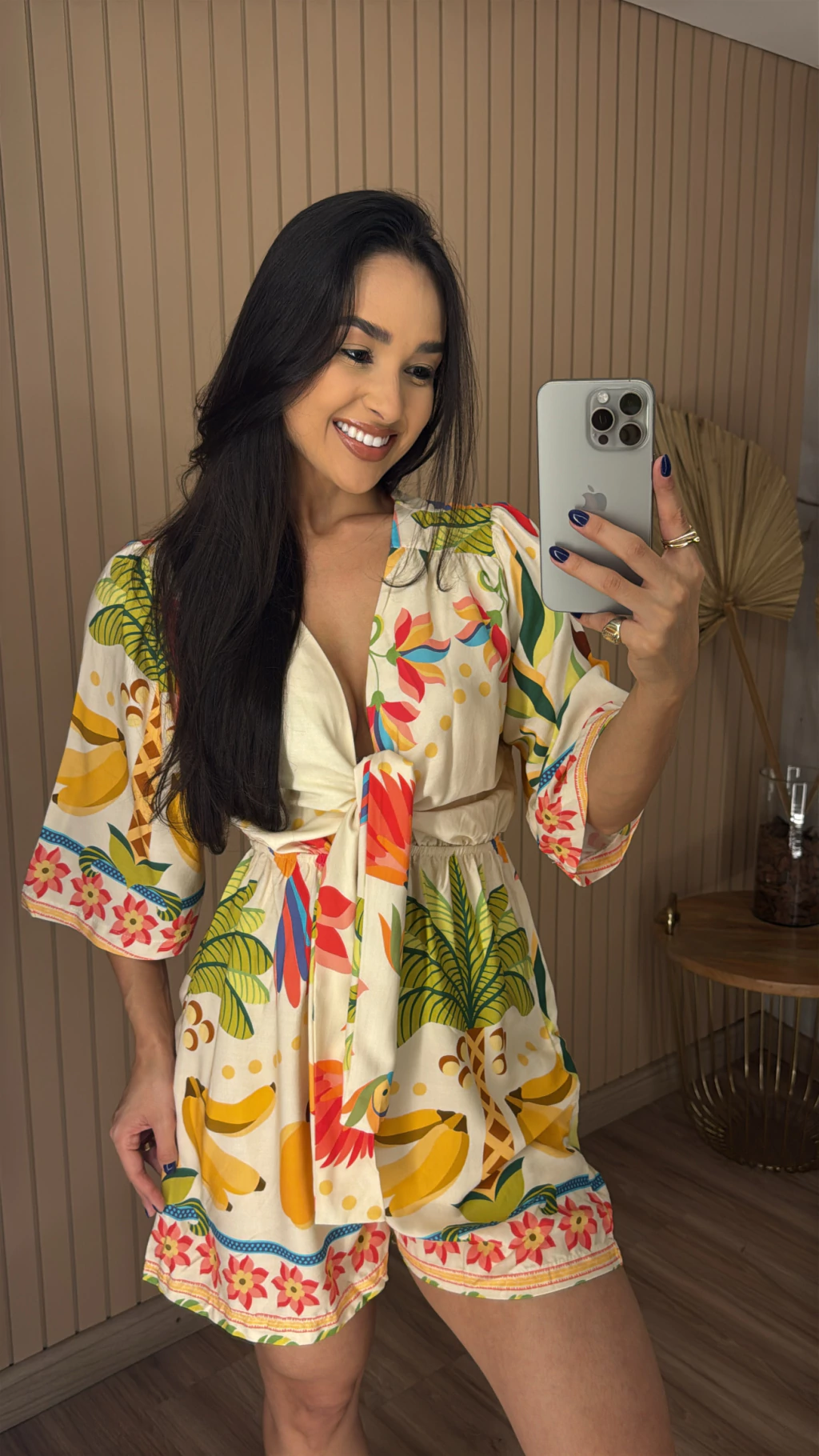 Confeccionado em viscolinho, o macaquinho tem um toque suave e uma leveza que acompanha seus movimentos com graça. A amarração confere um ajuste perfeito e um toque de charme, permitindo que você adapte a peça ao seu corpo de forma sutil.