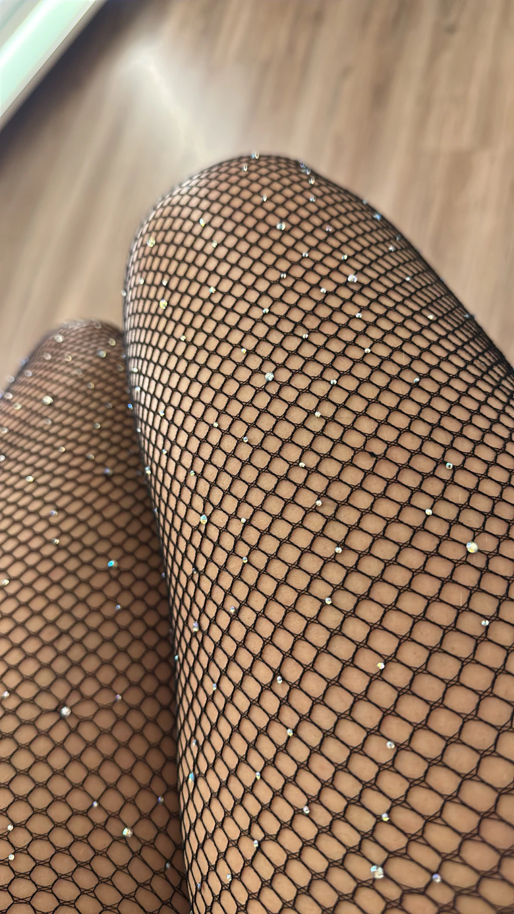 Modelo 3- Com Strass: Perfeita para brilhar! Os strass aplicados na meia elevam o nível do visual, ideal para festas, eventos e produções noturnas.