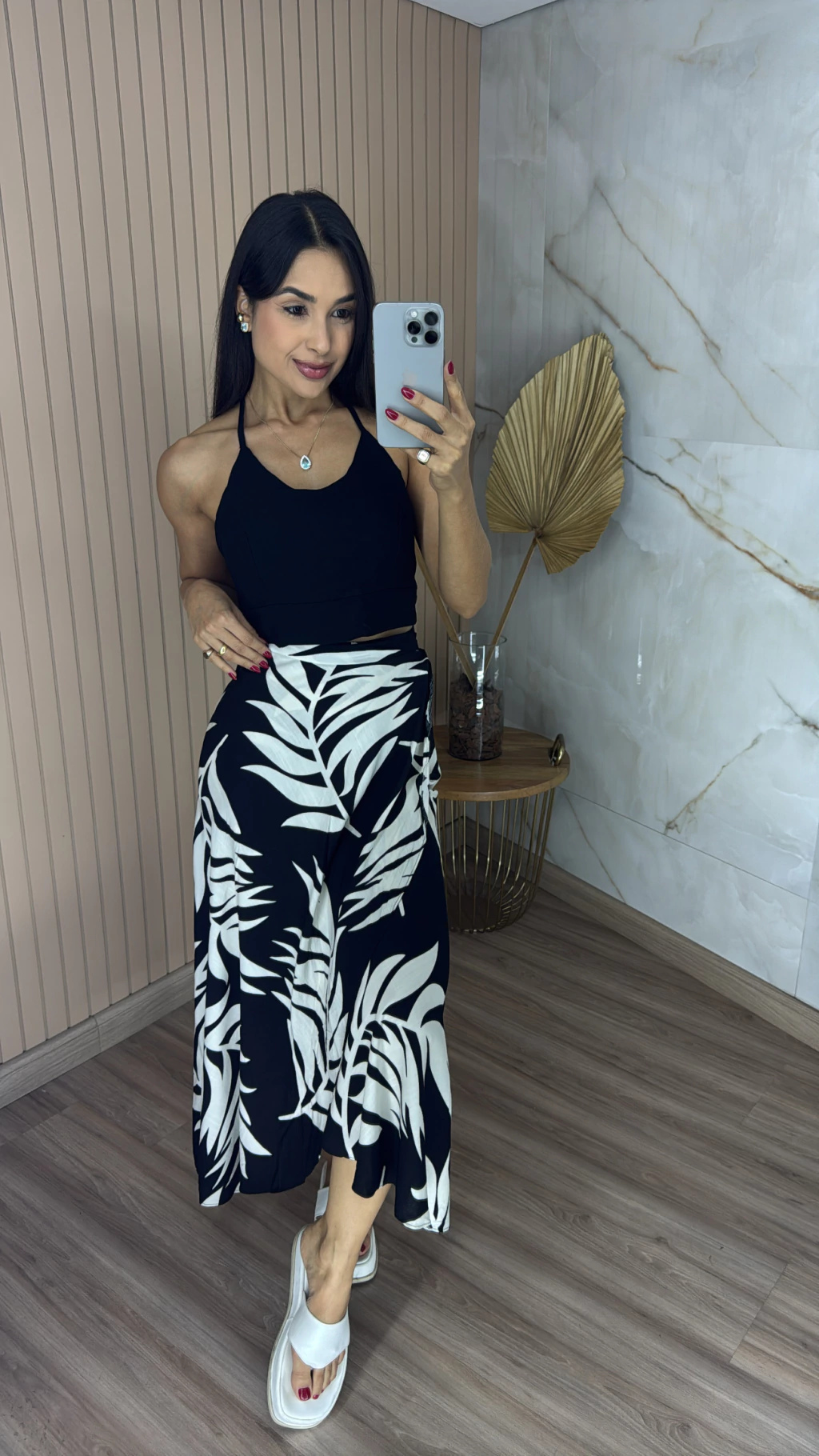 Versátil: estampa tropical moderna em cores clássica. Combina com croppeds, regatas, bodys, camisas.