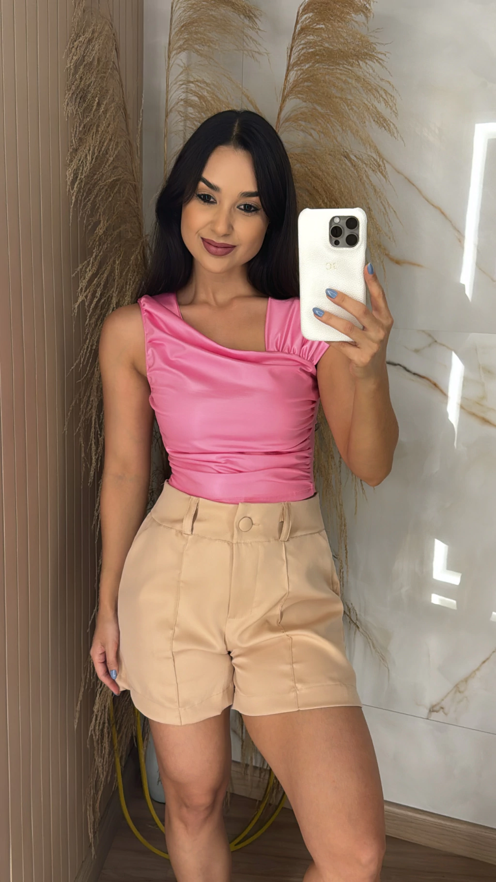 O short de alfaiataria é uma peça coringa que todas nós devemos ter em nosso guarda roupa. É uma peça leve, confortável e versátil. Podendo ser uma ótima opção nos dias de calor. É uma peça que forma lindas composições e pode ser usado com vários tipos de sapatos, como: rasteiras, tênis, sandálias... Formando looks confortáveis e despojados!