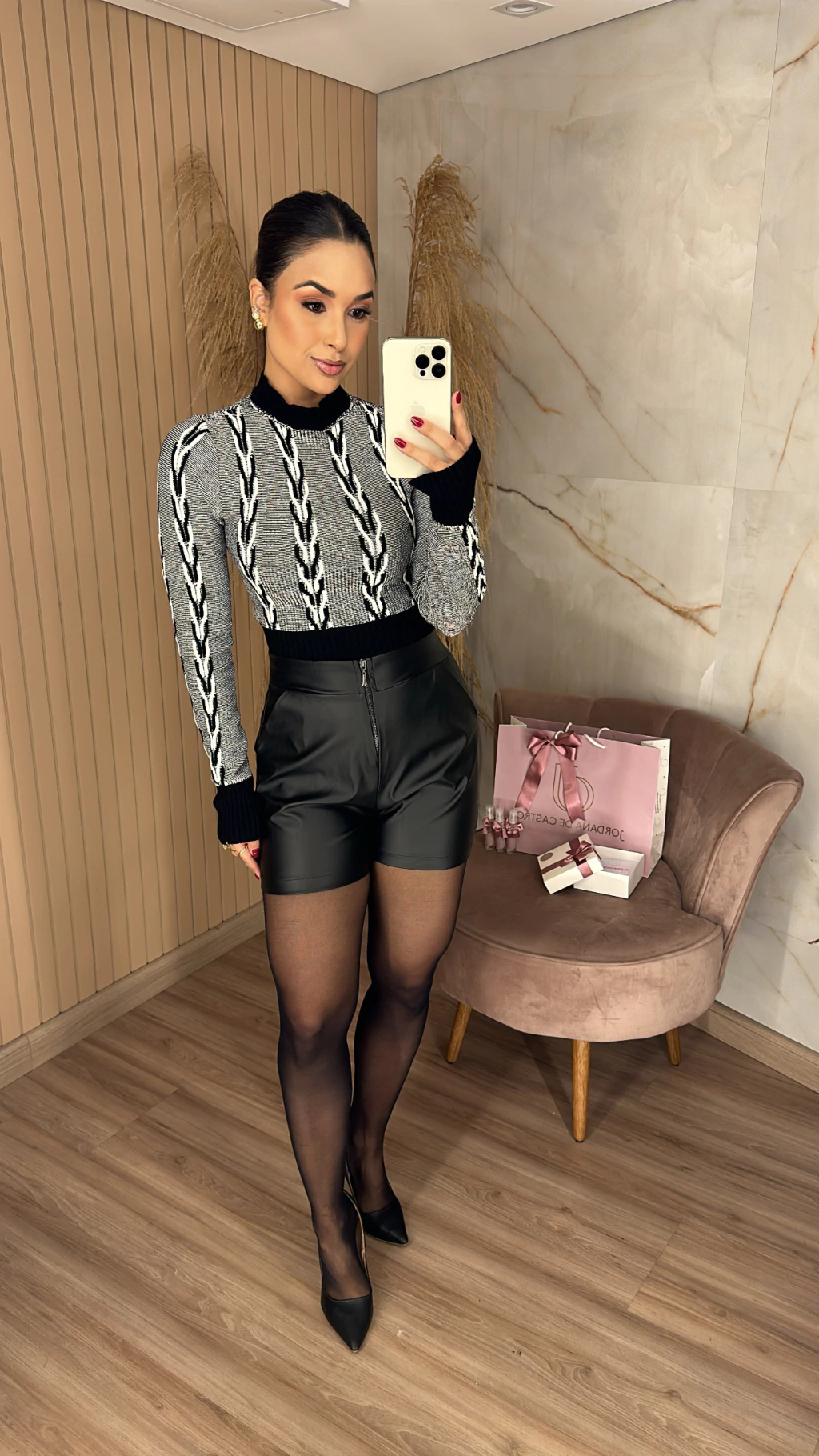 O short no tecido courinho é uma peça leve, confortável, que nos dá diversas possibilidade para compor looks despojados e confortáveis. Perfeito para eventos durante à noite como por exemplo shows, festas. Por ser uma peça versátil, é possível adicionar meia-calça em dias frios.