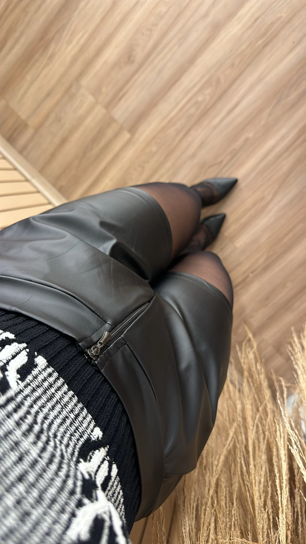 Descrição: O short de courinho possui bolsos laterais e fechamento com zíper.