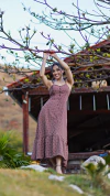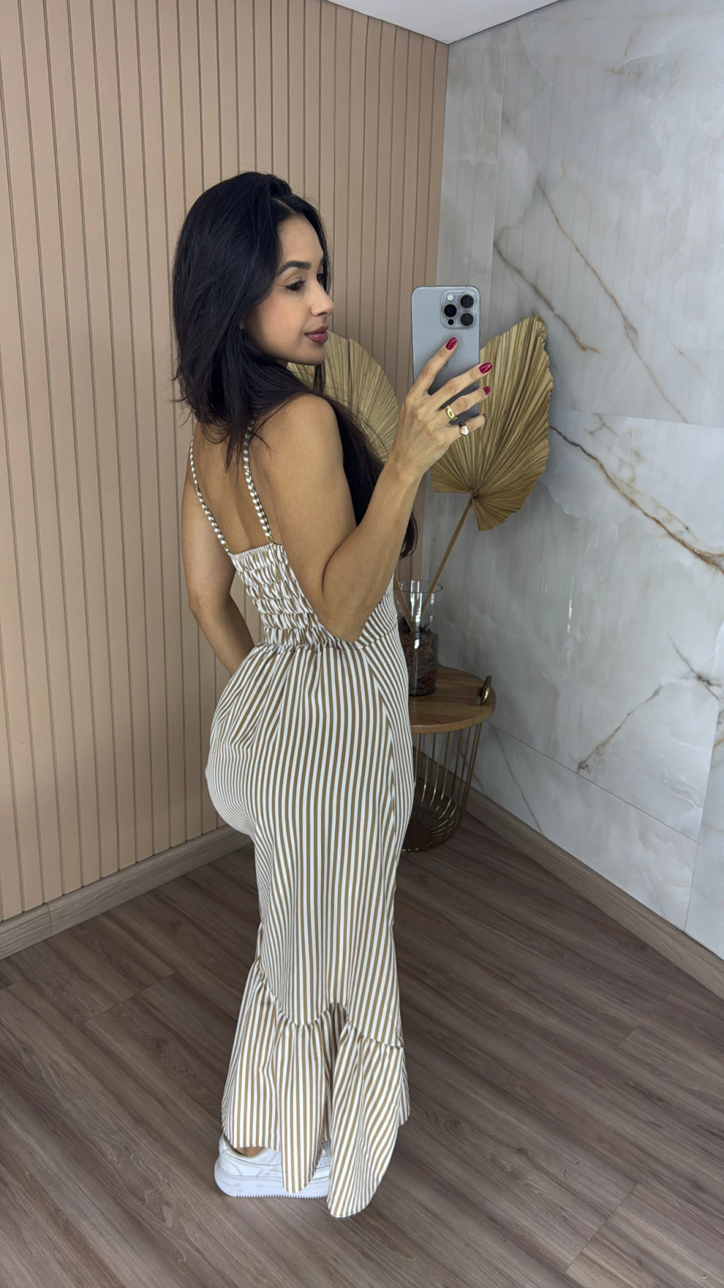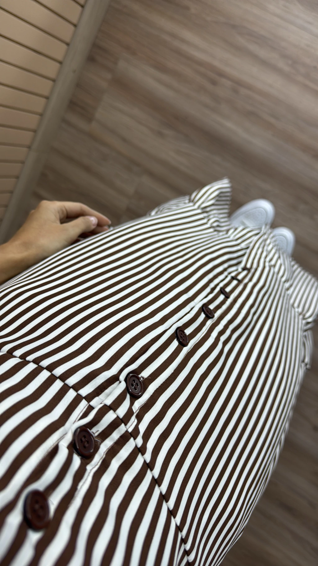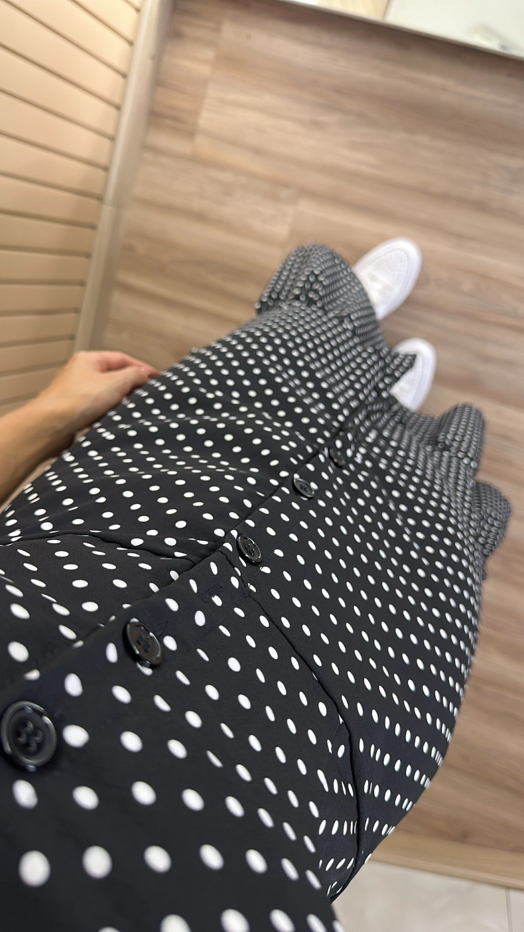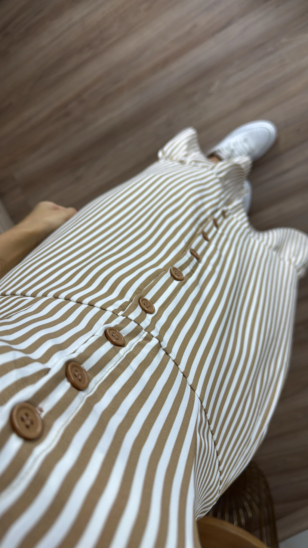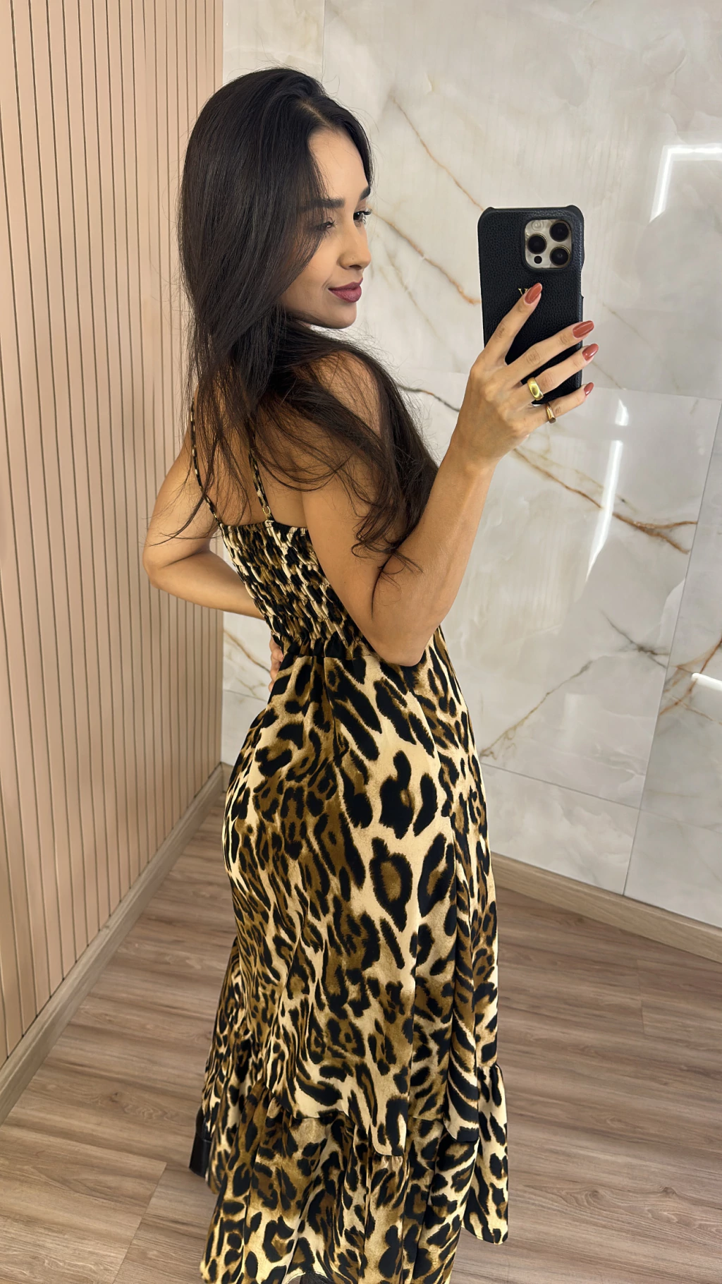 Descrição: o vestido é no tecido crepinho, modelo midi, com fechamento em botões, e alças reguláveis, contém bojo.