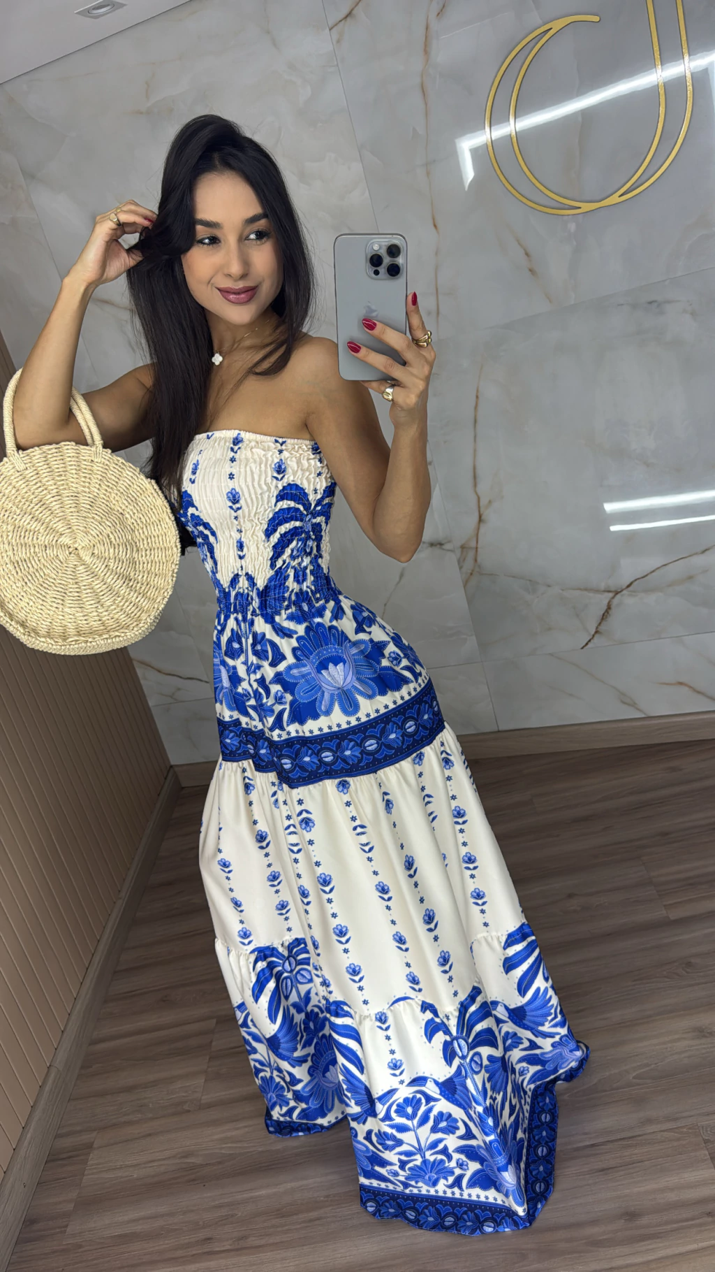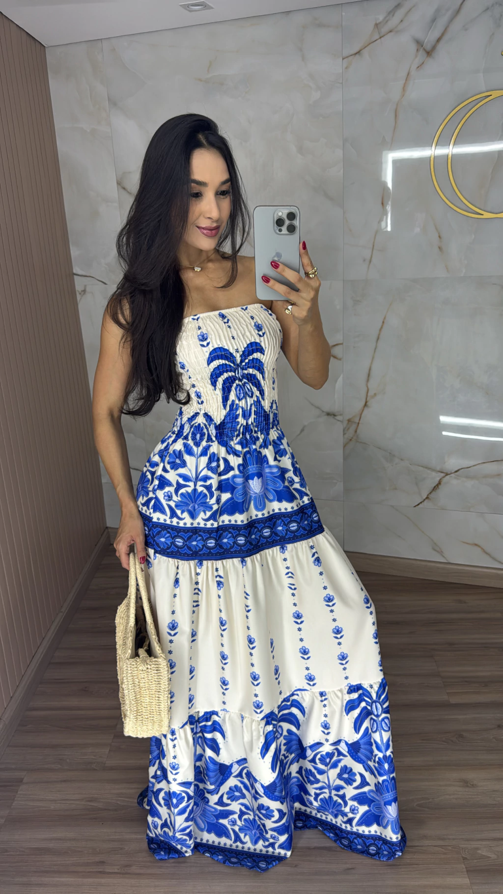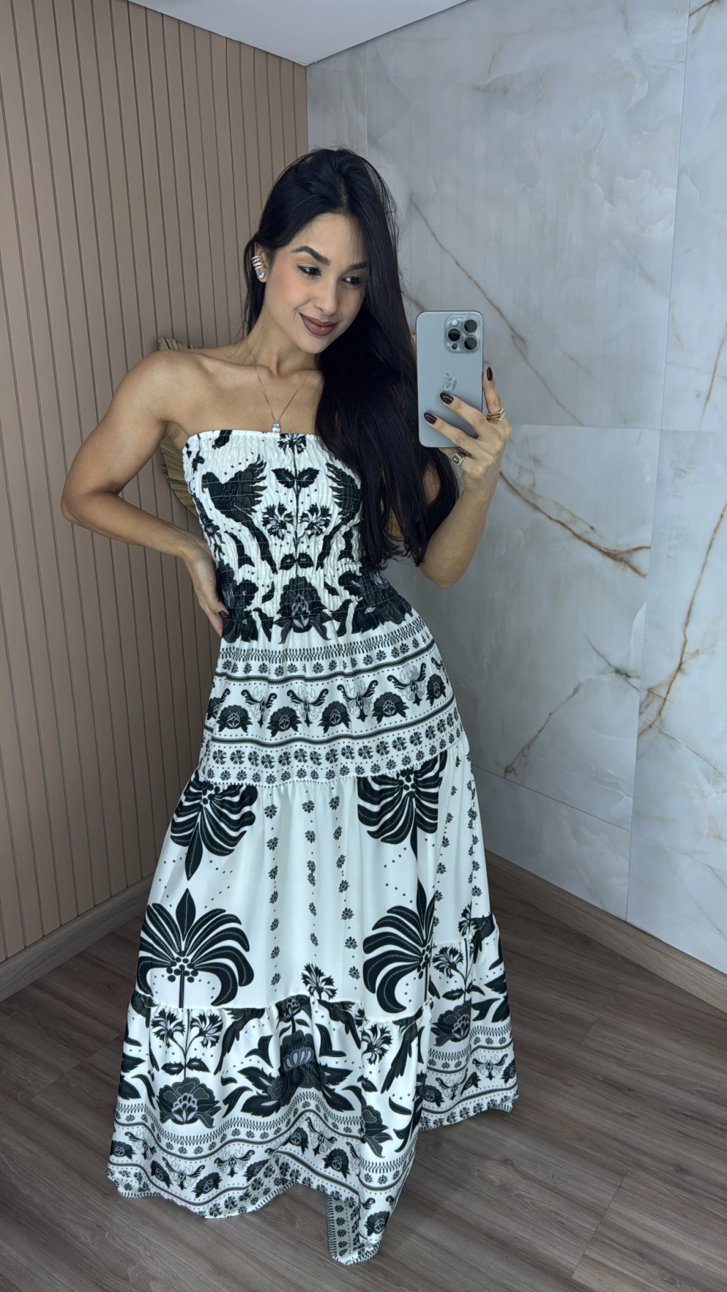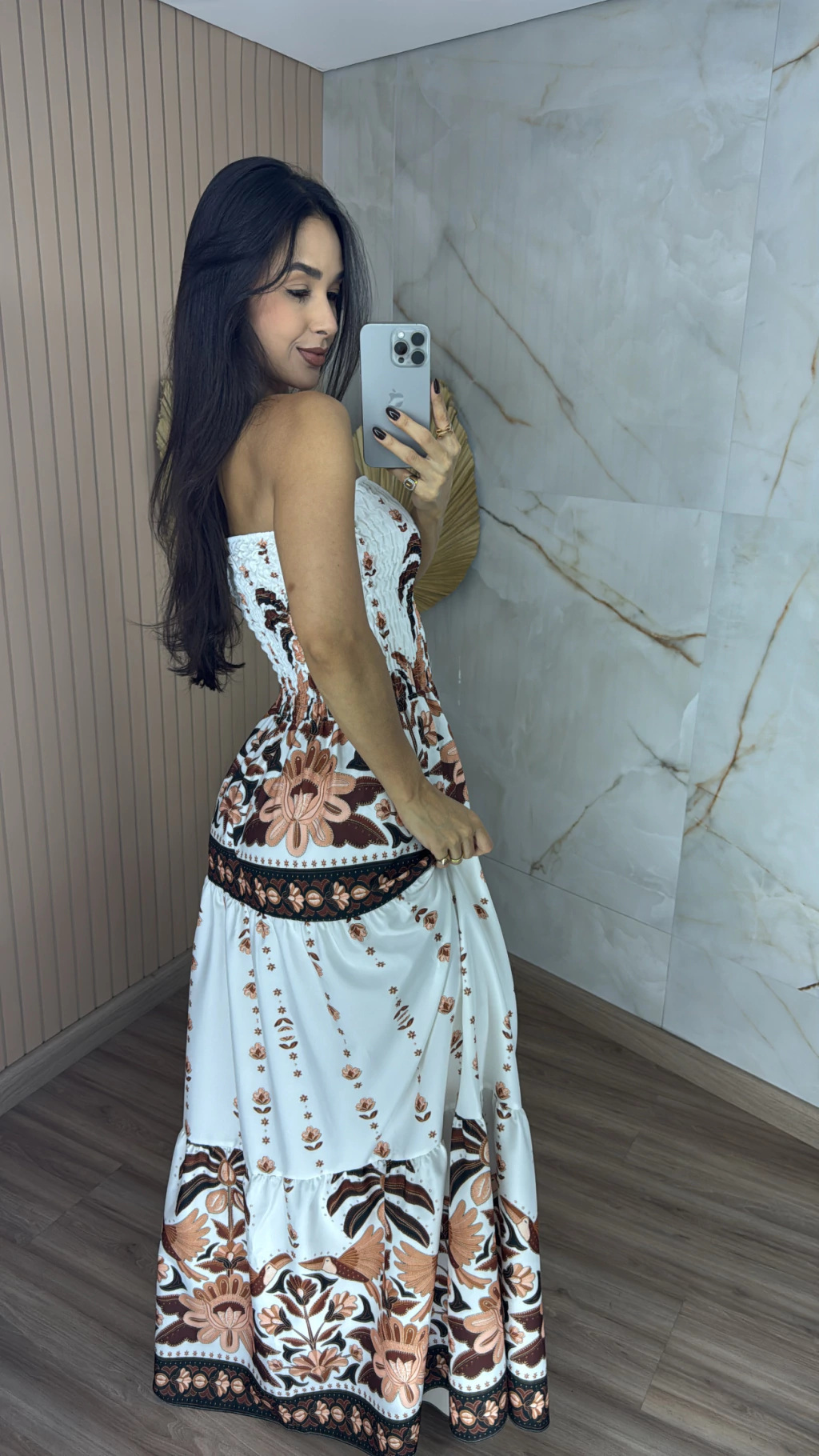 Descrição: Esse vestido é a escolha perfeita para mulheres que amam conforto aliado a elegância. Confeccionado em tecido crepinho leve e fluido, ele proporciona um caimento impecável, valorizando o corpo de forma natural. O destaque fica por conta do lastex no busto, que garante excelente ajuste ao corpo e proporcionando segurança e liberdade de movimentos. O modelo sem alças deixa os ombros a mostra, trazendo um toque de sensualidade e frescor, perfeito para dias quentes ou eventos ao ar livre. O comprimento longo traz sofisticação, enquanto a estampa vibrante com detalhes florais oferece charme e autenticidade ao visual. Versátil, essa peça transita com facilidade entre o look do dia a dia, uma saída estilosa para a praia ou um visual mais elaborado para encontros especiais.