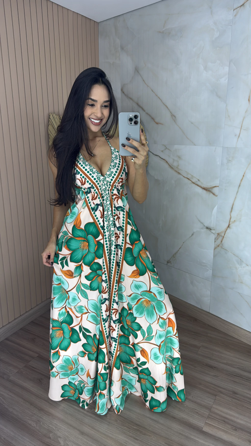 Descrição: Se você procura um look marcante, feminino e com caimento perfeito, acabou de encontrar. O vestido crepinho longo estampado une sofisticação, frescor e conforto em uma única peça que valoriza todos os tipos de corpos com muito charme.