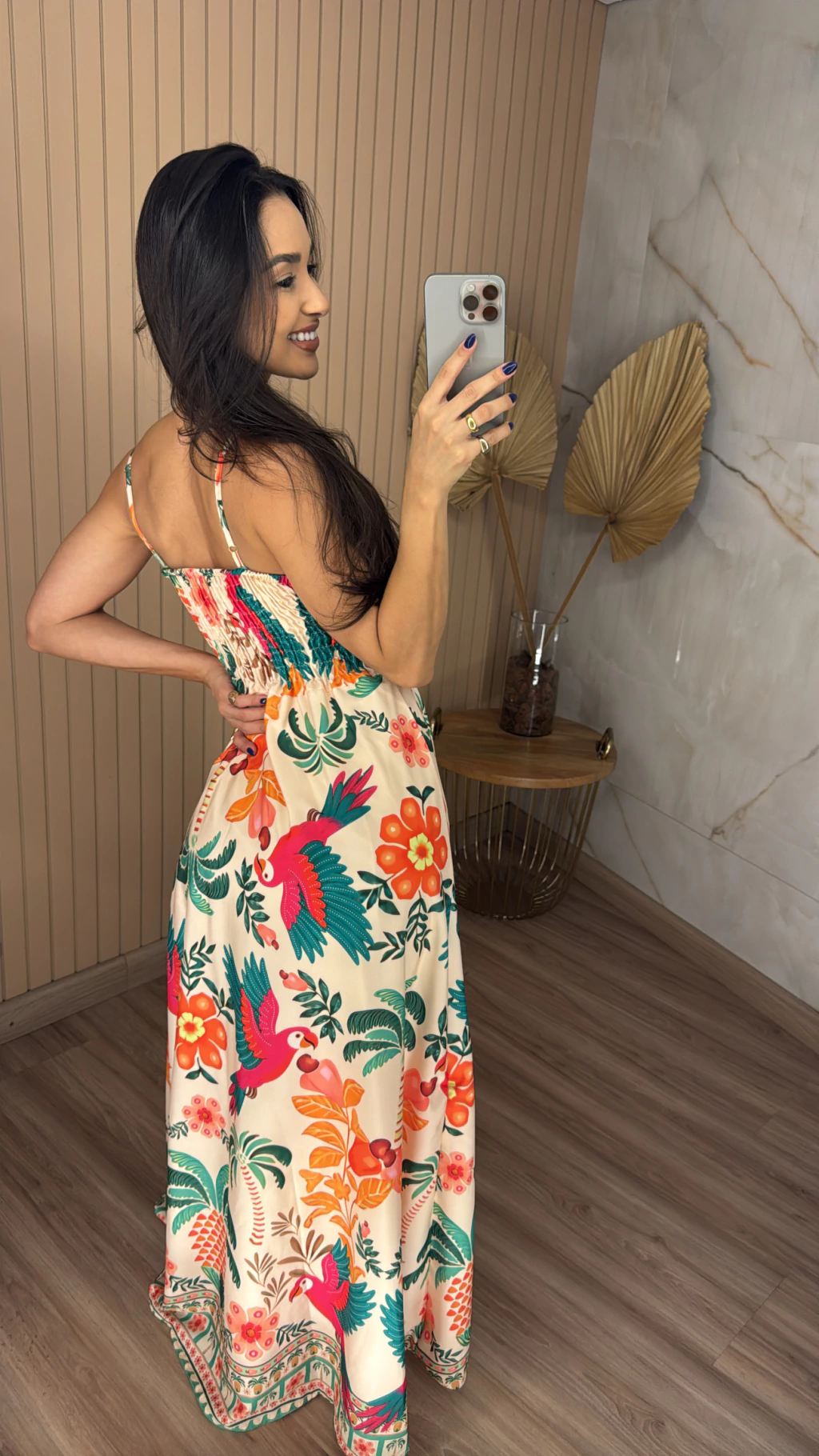 Comprimento Elegante: O modelo longo é um clássico que valoriza a silhueta, tornando o vestido ideal para qualquer ocasião especial.