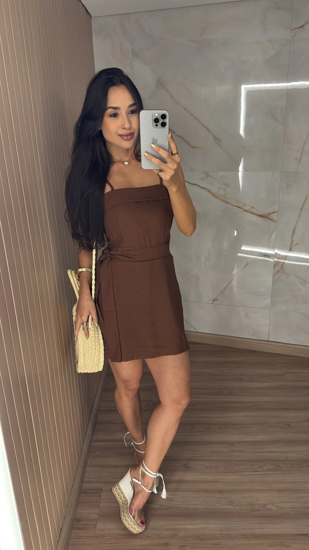 Descrição: Com visual de vestido e praticidade de macaquinho, essa peça é a definição de charme funcional. Confeccionado em alfaiataria sensorial, tecido leve, encorpado e com toque macio, ele garante caimento impecável e elegância sem esforços. Possui bojo embutido, que modela o busto, alças finas com regulagem, permitindo um ajuste perfeito ao corpo. Ideal para quem busca um look versátil, moderno e com segurança, sem abrir mão do conforto.
