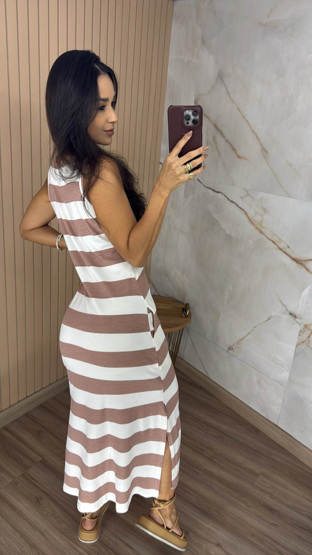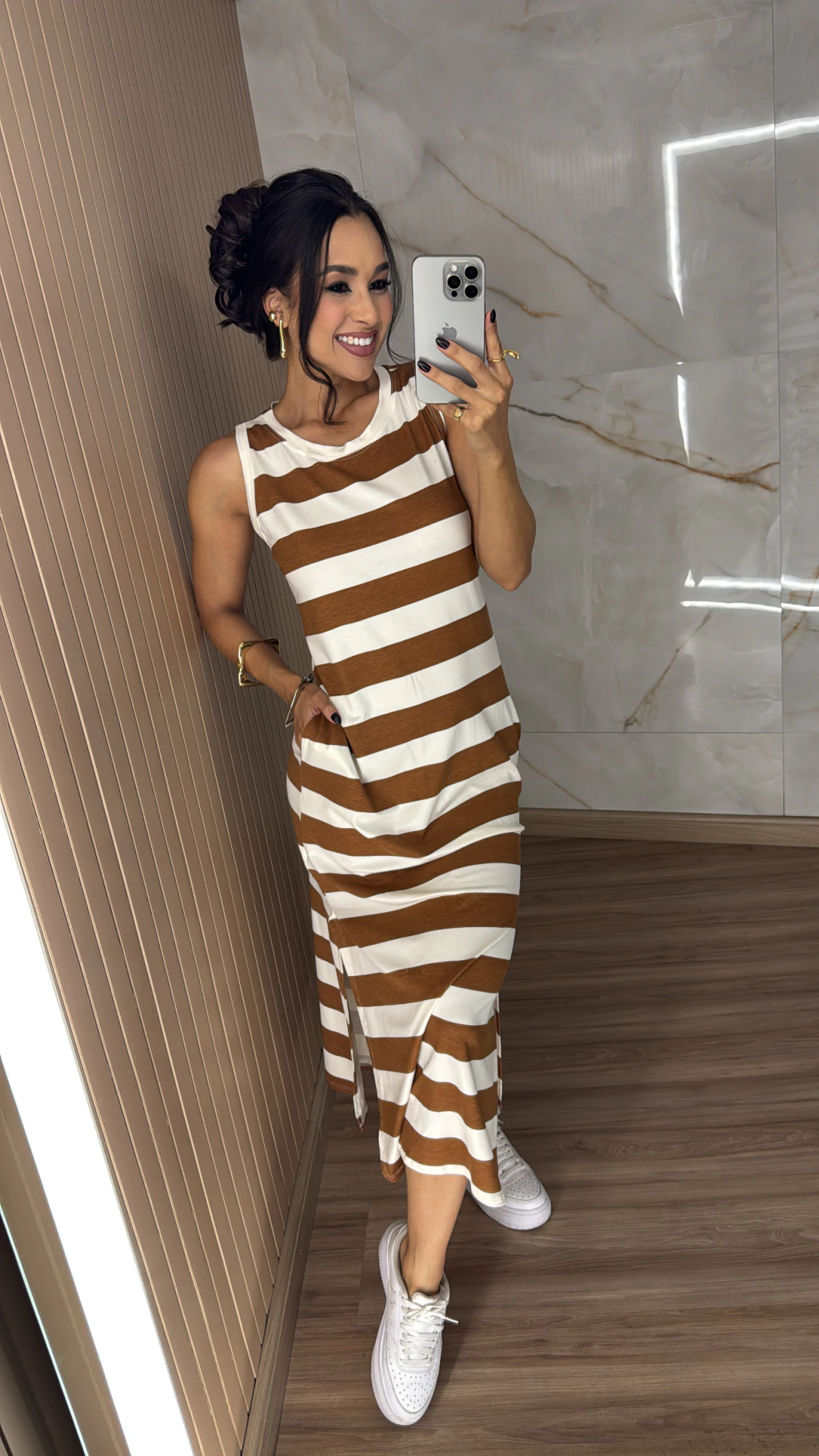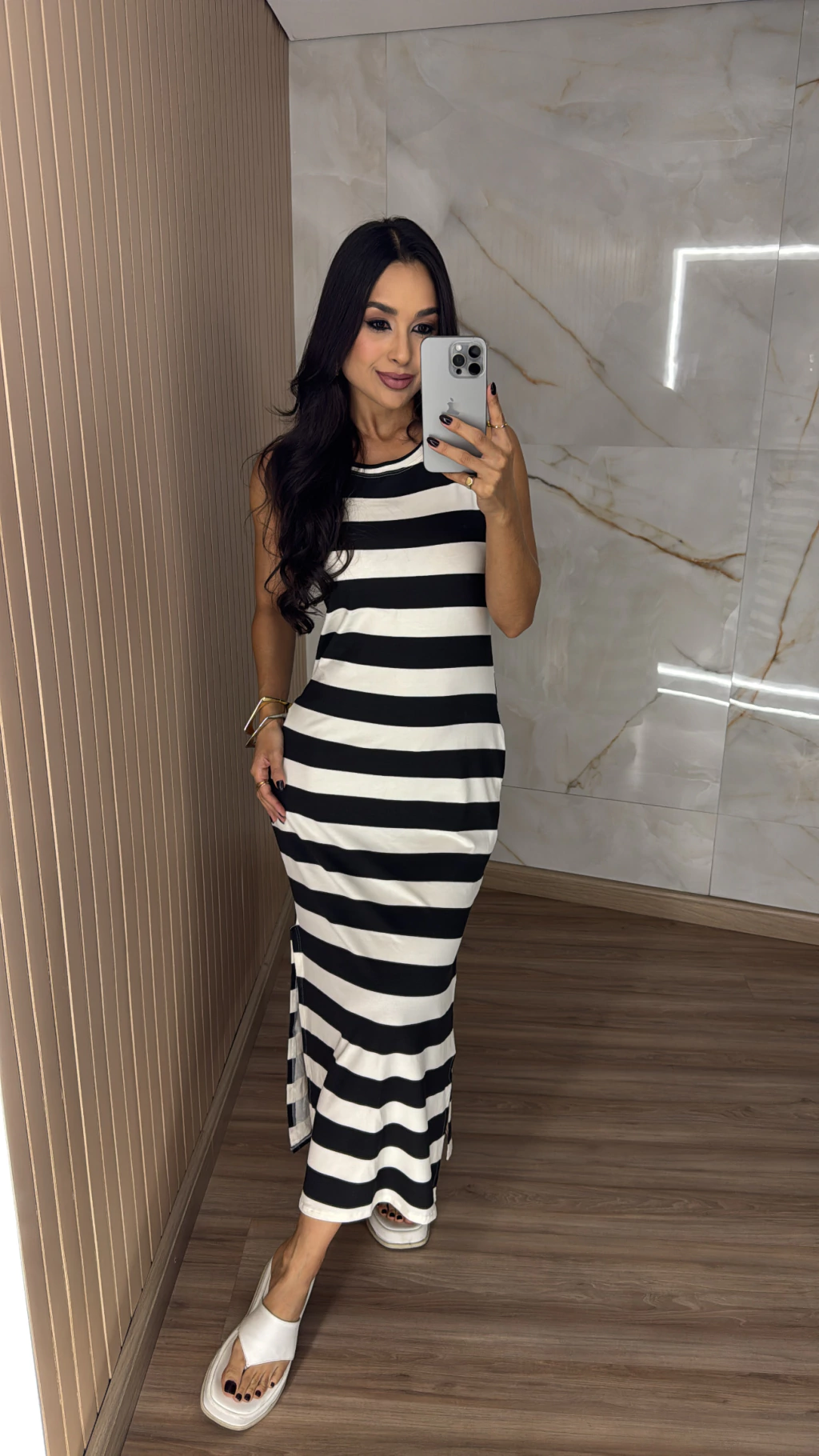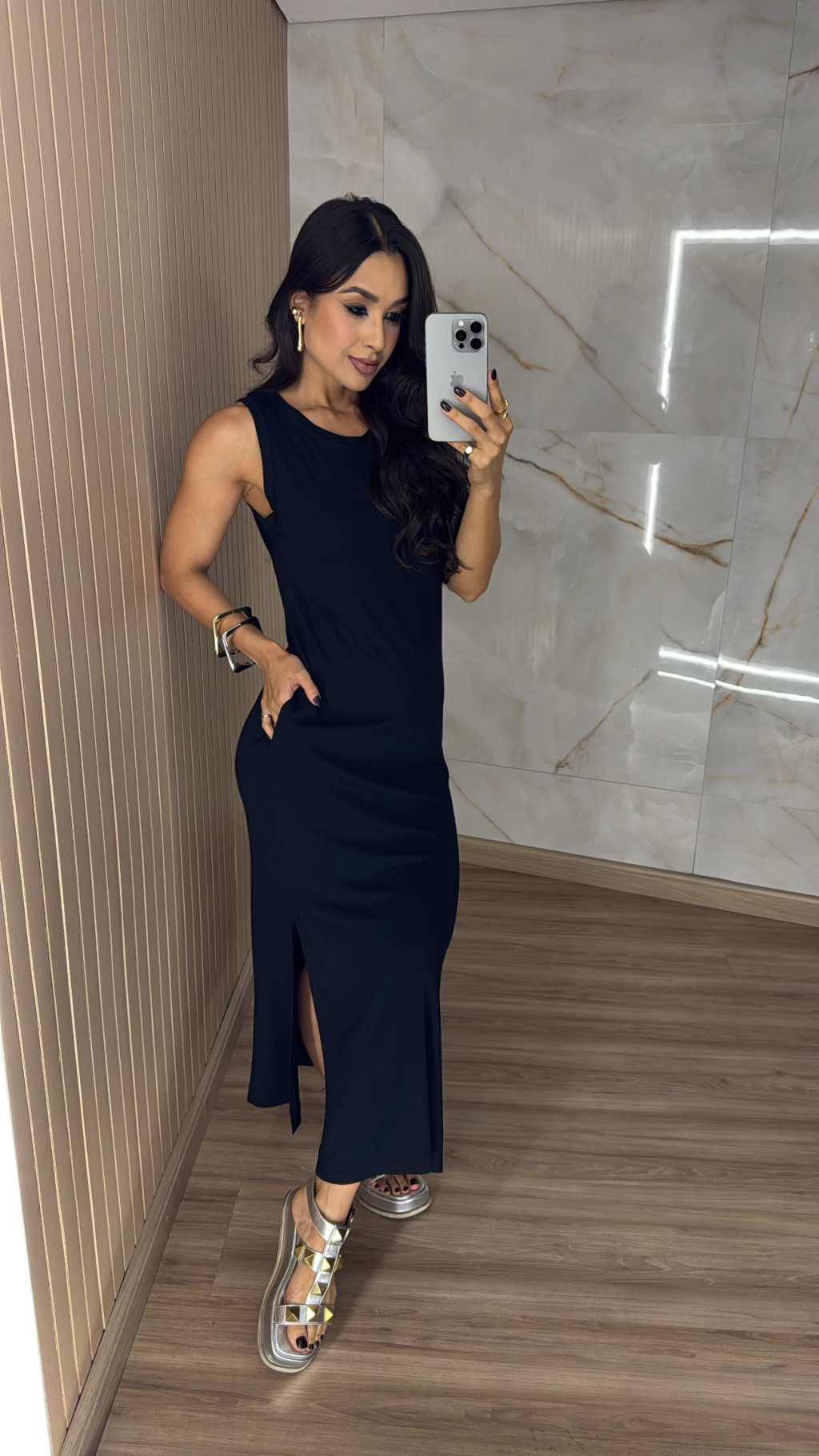 Descrição: Sabe aquela peça leve, prática e cheia de estilo que a gente ama usar em qualquer ocasião? Esse é o Vestido Malha Regata, com fendas laterais que trazem movimento e um toque moderno a produção. Confeccionado em malha macia e fresquinha, ele tem o caimento perfeito para valorizar o corpo com conforto, sem apertar. O modelo regata alonga a silhueta e deixa os ombros à mostra com elegância, ideal para dias quentes ou para sobrepor com jaquetas, cardigans e camisas em dias mais frescos.