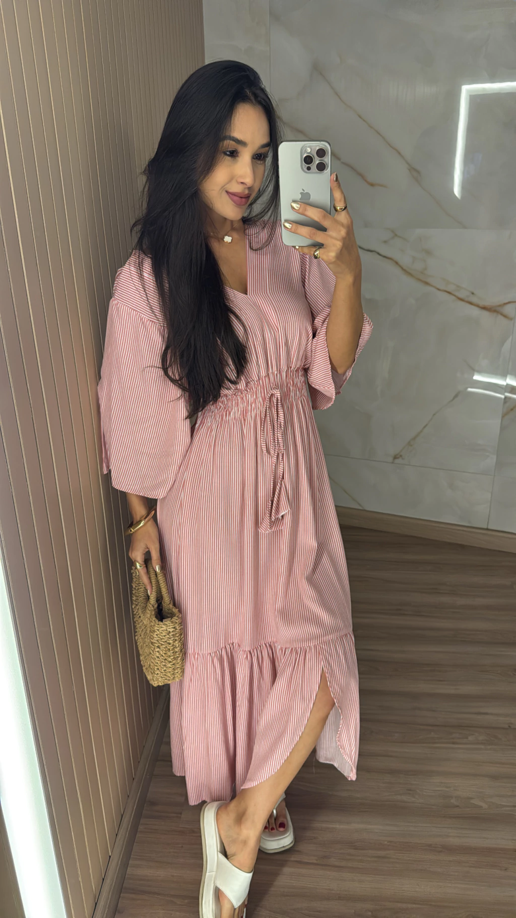 Descrição: Se você procura um vestido leve, elegante e que valorize sua silhueta com conforto, o vestido manga morcego é a escolha ideal. Perfeito para quem ama praticidade sem abrir mão da sofisticação, ele é versátil para usar do dia á noite. Para as gravidinhas o vestido viscolinho listrado é perfeito para te acompanhar durante e após a gestação.