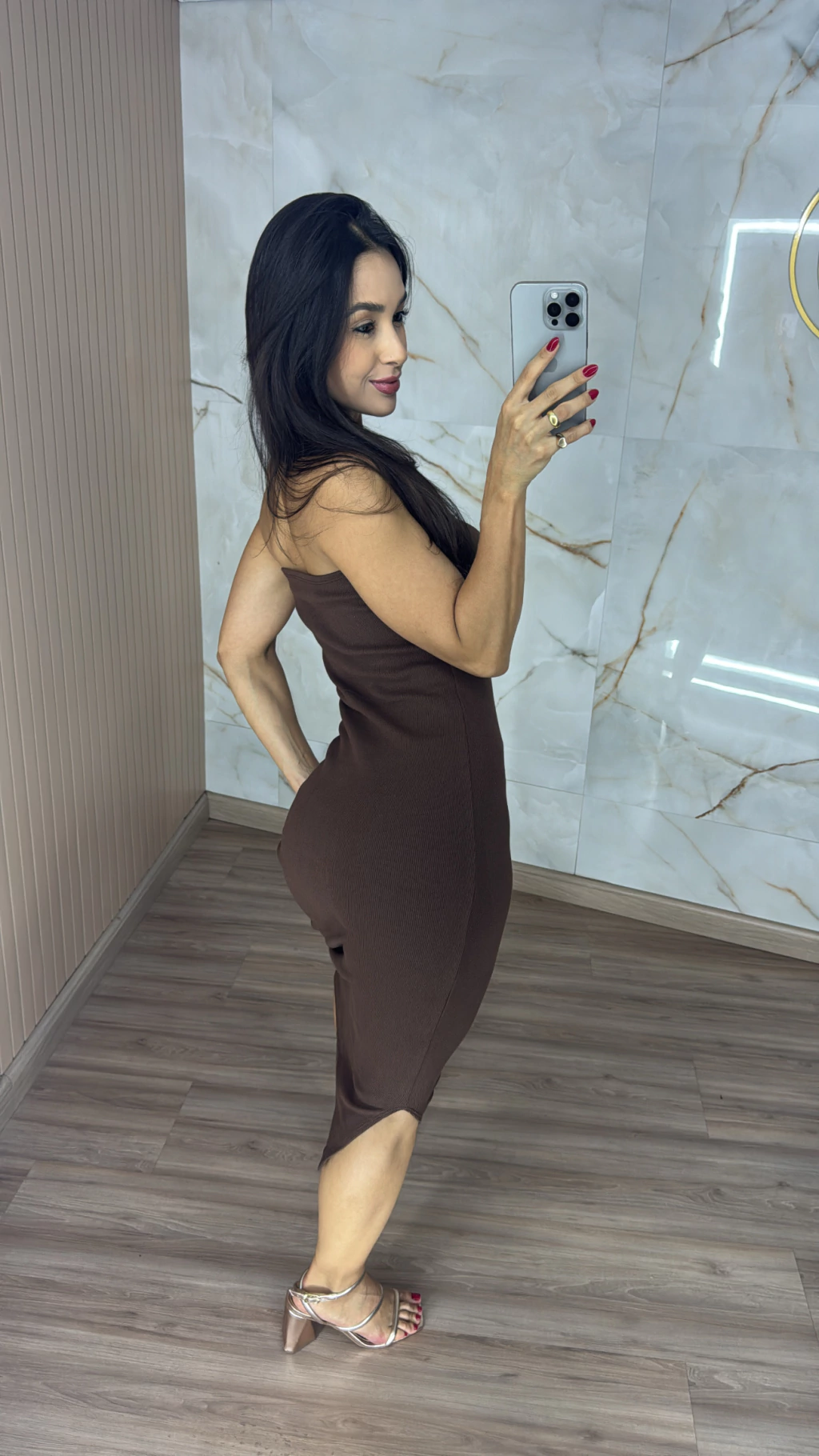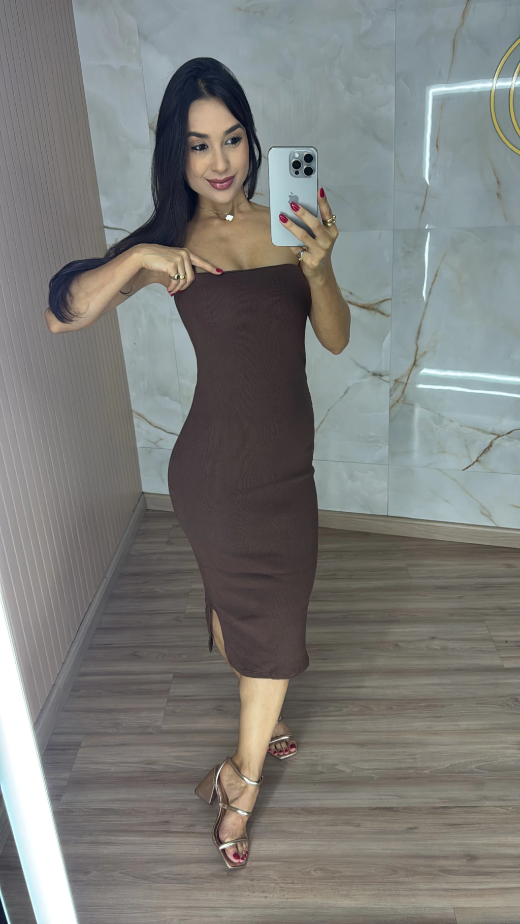 Descrição: O vestido ribana midi sem alças é aquela peça que une o melhor dos dois mundos: estilo e praticidade. Com bojo embutido para maior sustentação e segurança, esse modelo sem alças valoriza o colo, realça as curvas e entrega um visual super moderno e feminino. Confeccionado em tecido ribana canelado, ele se ajusta perfeitamente ao corpo sem marcar, oferecendo conforto e elasticidade ideais para o dia a dia ou para ocasiões especiais. A fenda lateral acrescenta um toque de ousadia e movimento a peça, garantindo um look sofisticado com um toque de sensualidade na medida certa.