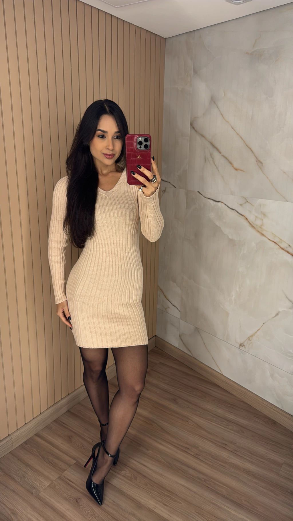 Vestido em tricot é sempre uma opção assertiva, pois temos nele uma grande versatilidade, pois conseguimos ir de uma proposta casual para a elegante apenas, alterando os calçados e acessórios.