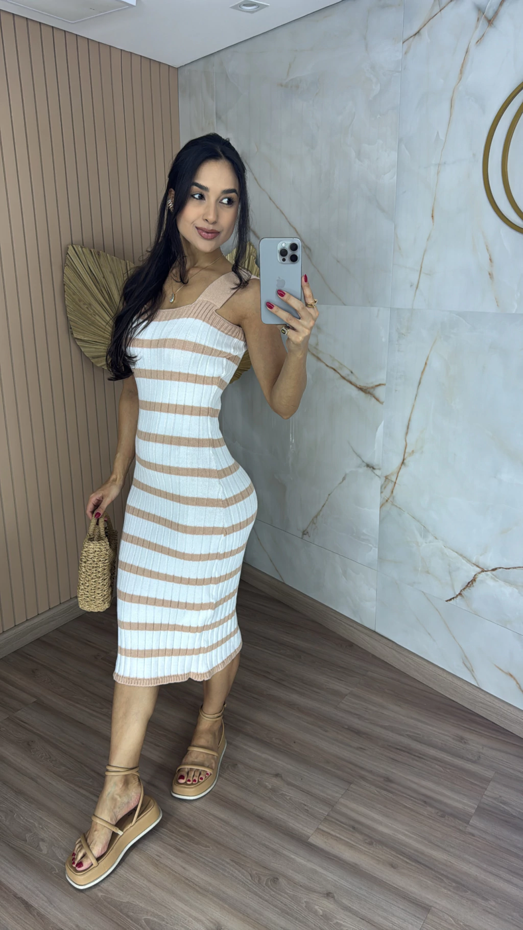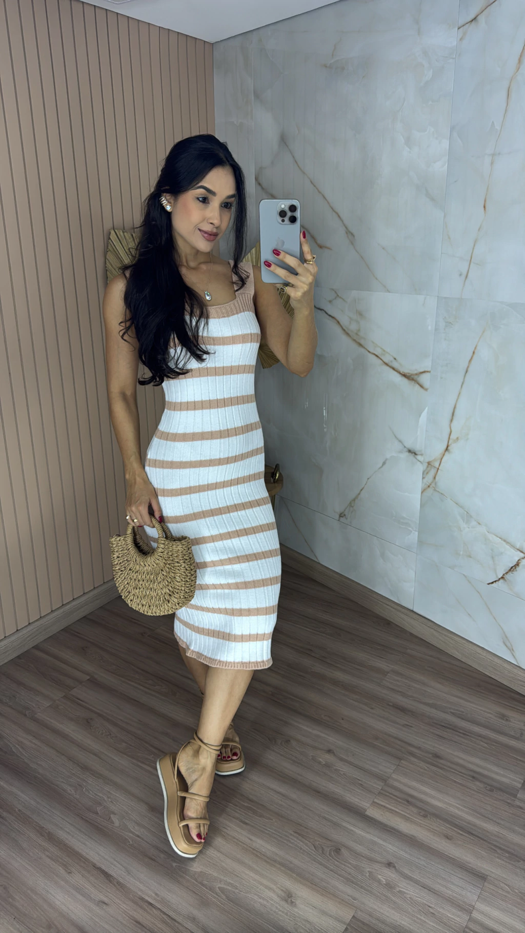 Descrição: Versátil, elegante e com aquele toque fashionista que transforma qualquer look. O vestido tricot modal midi listrado é a escolha perfeita para mulheres que buscam estilo com conforto absoluto. Confeccionado em tricot modal de alta qualidade, o vestido se adapta perfeitamente ao corpo, proporcionando um caimento impecável e uma sensação de leveza ao vestir. O tecido é conhecido pela sua maciez, elasticidade e durabilidade, além de manter a peça com aspecto de novo por muito mais tempo.
