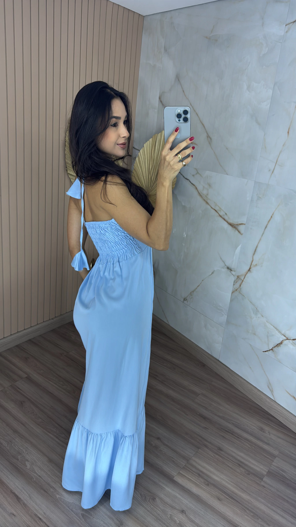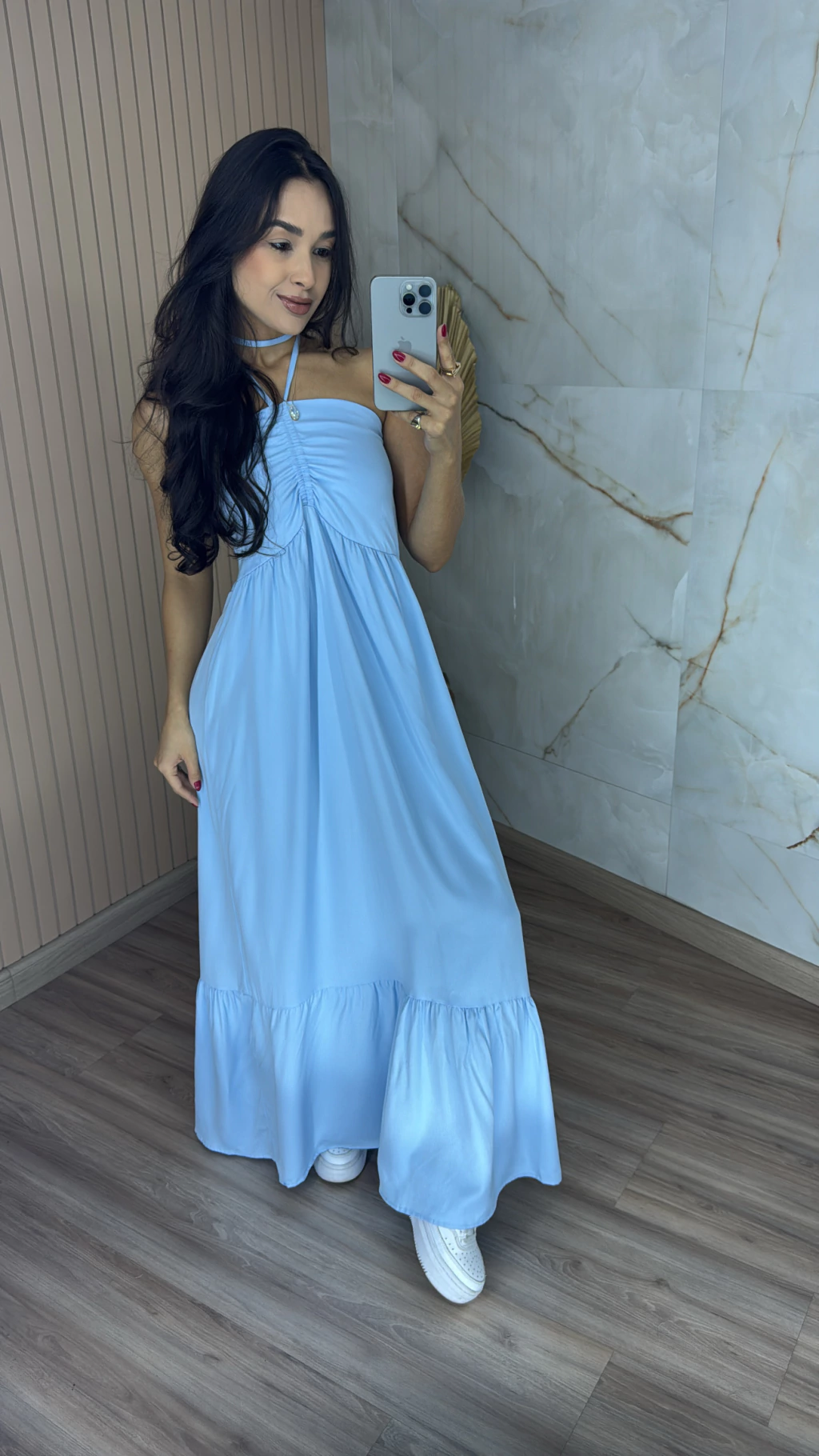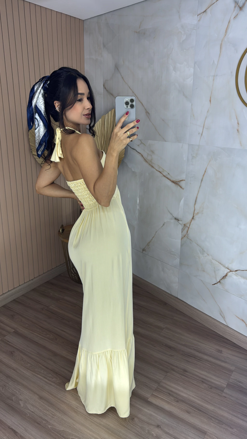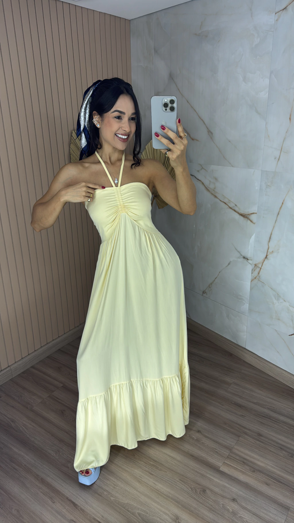 Descrição: O vestido longo frente única possui o tecido viscosarja, um tecido com caimento impecável, toque macio e excelente fluidez. Perfeito para te acompanhar em dias quentes com muito estilo e conforto. O modelo frente única valoriza o colo e os ombros com charme delicado, enquanto a parte posterior conta com lastex, garantindo melhor ajuste a corpo e total liberdade de movimentos. O comprimento longo com recorte e leve babado na barra confere um ar sofisticado, sem abrir mão do visual despojado. Ideal para compor looks desde passeios do fim de semana até produções mais elaboradas com certos acessórios. Aposte com rasteiras, sandálias ou saltos para um toque elegante.